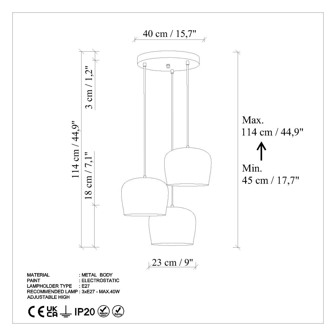 - Socket Type: 3 x E 27 Max 40 W