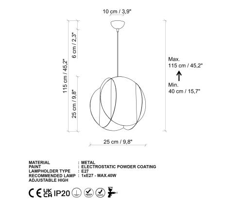 This chandelier features a socket type of 1 x E27 Max 40W, allowing you to choose the perfect bulb to create the ambiance you desire. The cable length of 90 cm gives you flexibility in installation, while the IP20 rating ensures safety and durability.