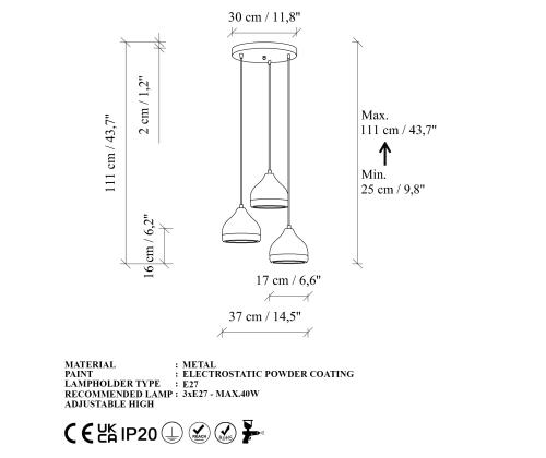 - Socket Type: 3 x E 27 Max 40 W