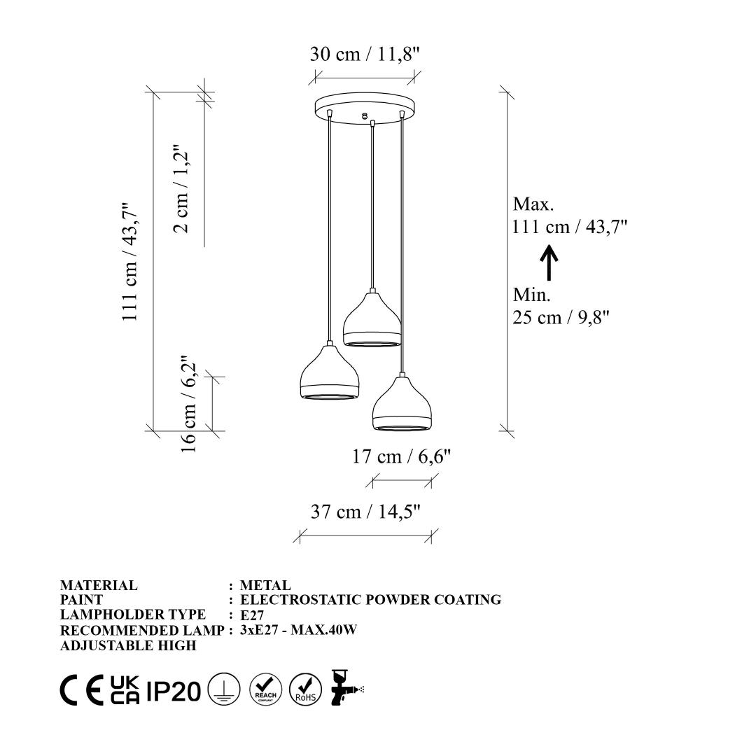 - Socket Type: 3 x E 27 Max 40 W