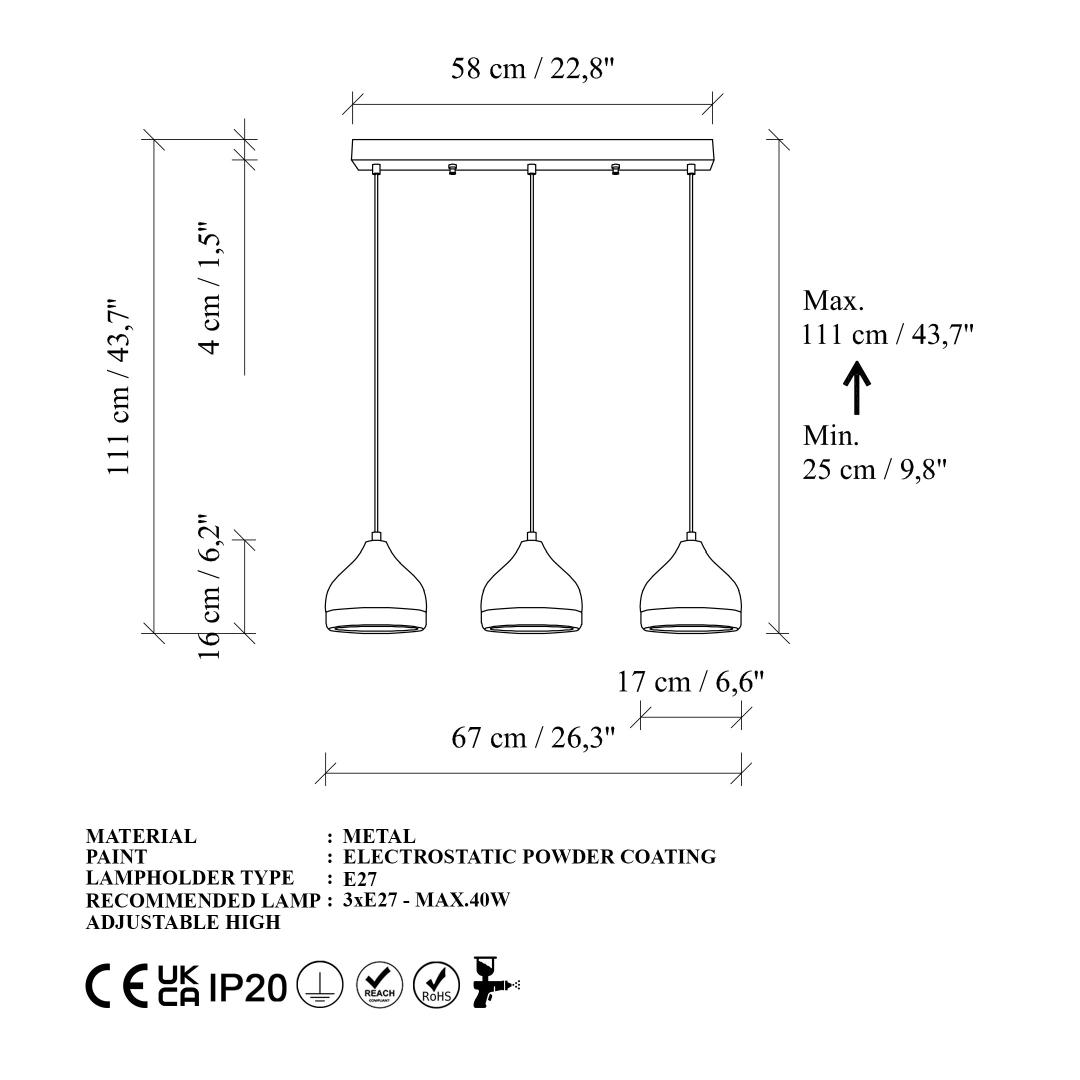 Let your creativity shine with this versatile chandelier. The three E27 sockets allow you to choose the perfect bulbs to create the lighting effect you desire, whether it's soft and warm or bright and inviting. Add your personal touch to your space and create a warm and welcoming atmosphere for your family and friends to enjoy.