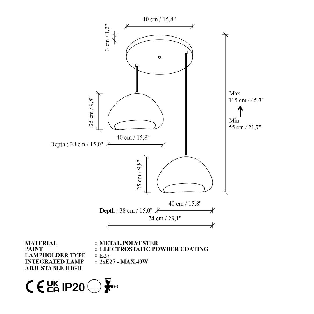 With its adjustable height and two E27 sockets, this chandelier allows you to customize the lighting to suit your needs. Add your favorite bulbs to create a warm and inviting glow that will make your home feel like a luxurious retreat. Whether you're hosting a dinner party or enjoying a quiet night in, this chandelier will set the perfect mood.