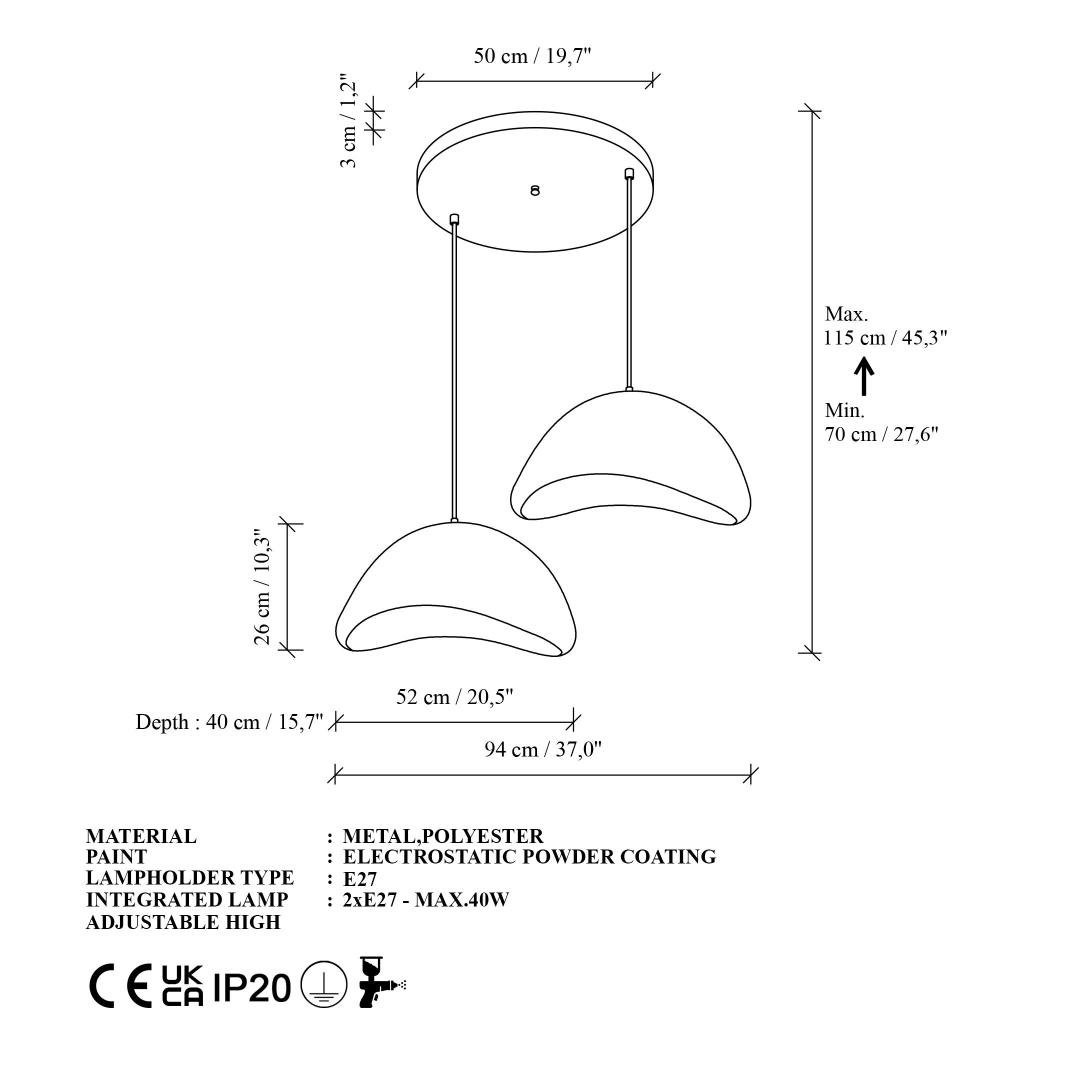 - Socket Type: 2 x E 27 Max 40 W
