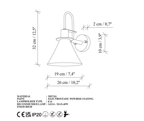 With a socket type of 1 x E 14 Max 40 W, this wall lamp is easy to install and use. Simply attach it to your wall and plug it in for instant illumination. Please note that the bulb is not included, so be sure to pick out your favorite E 14 bulb to complete the look.