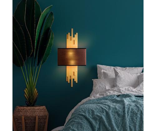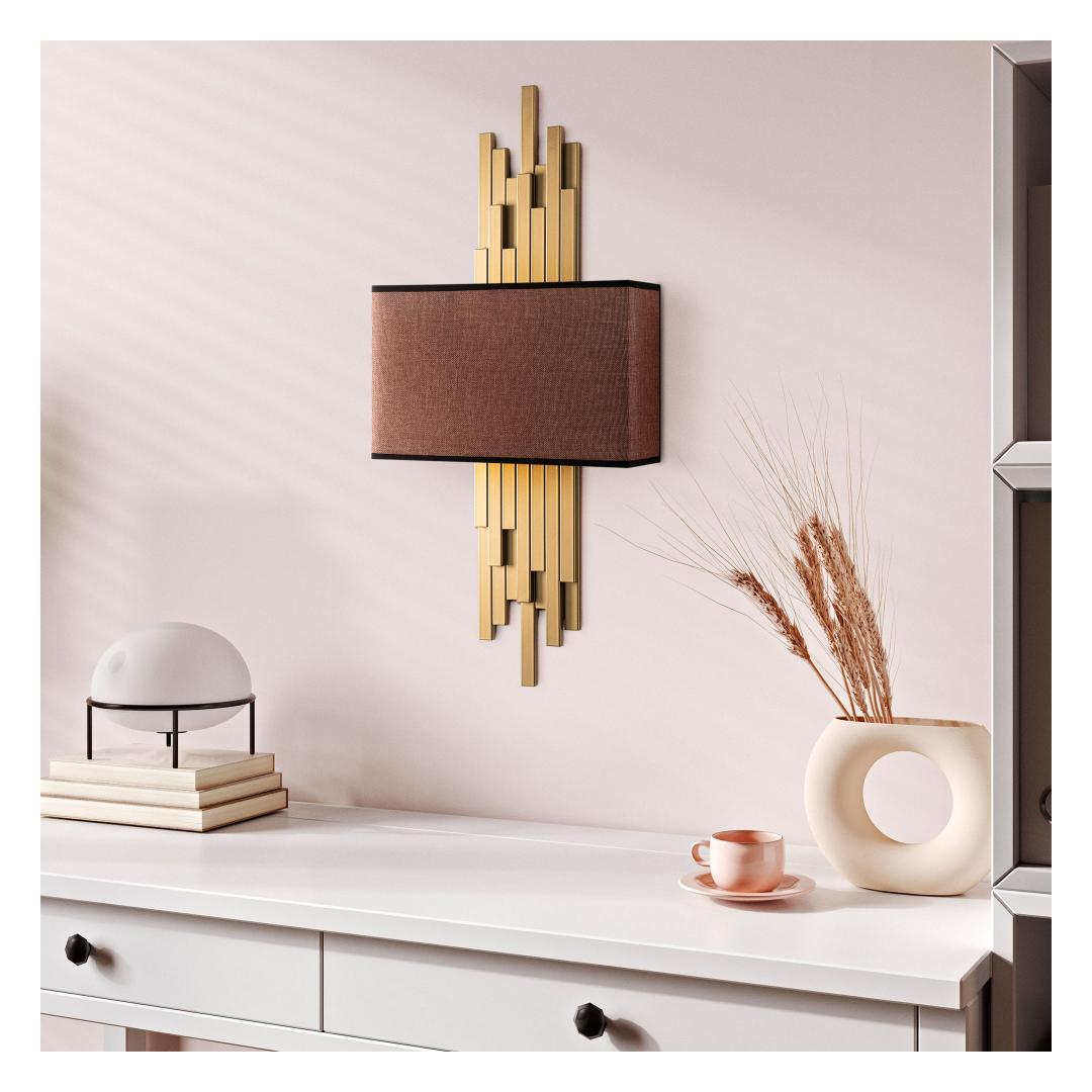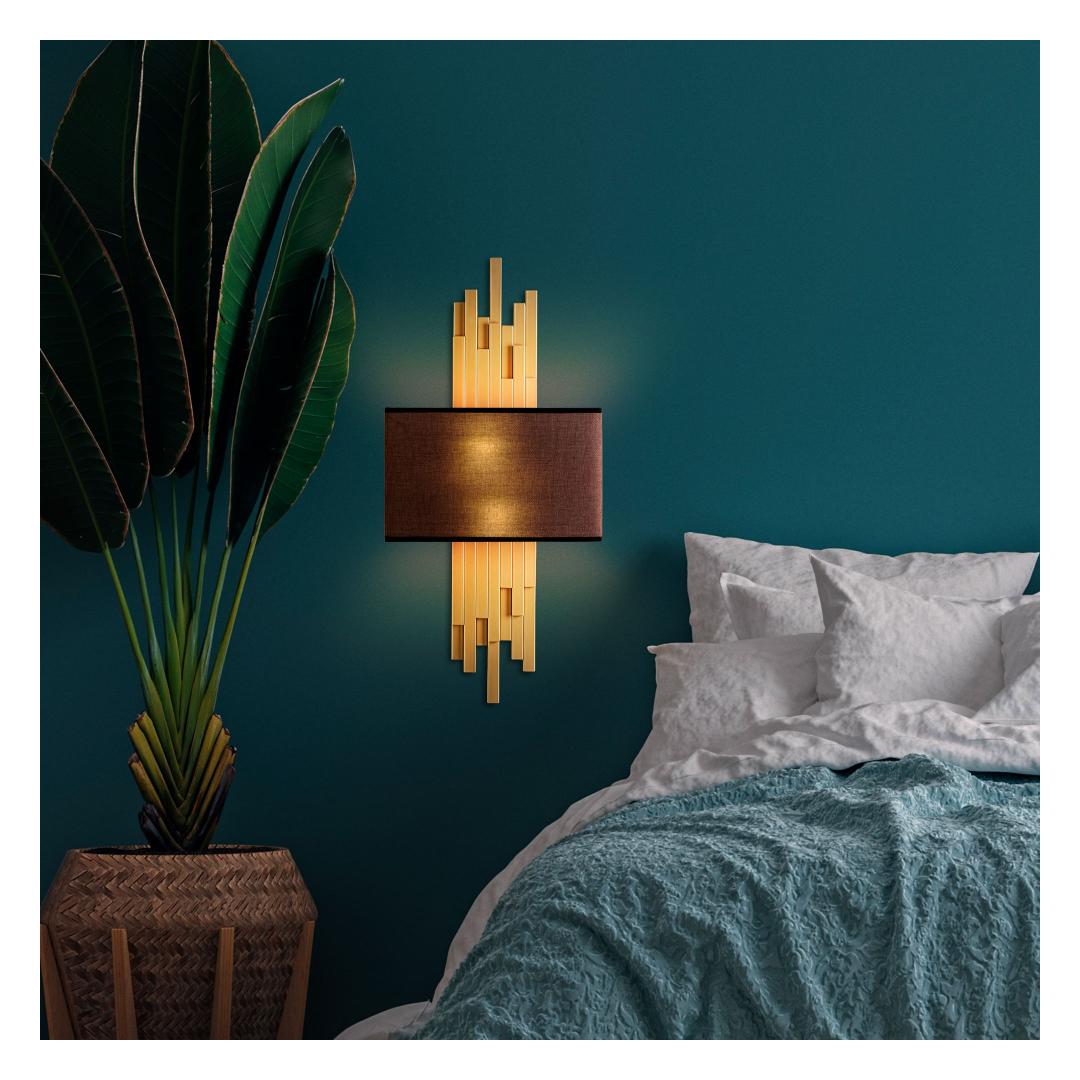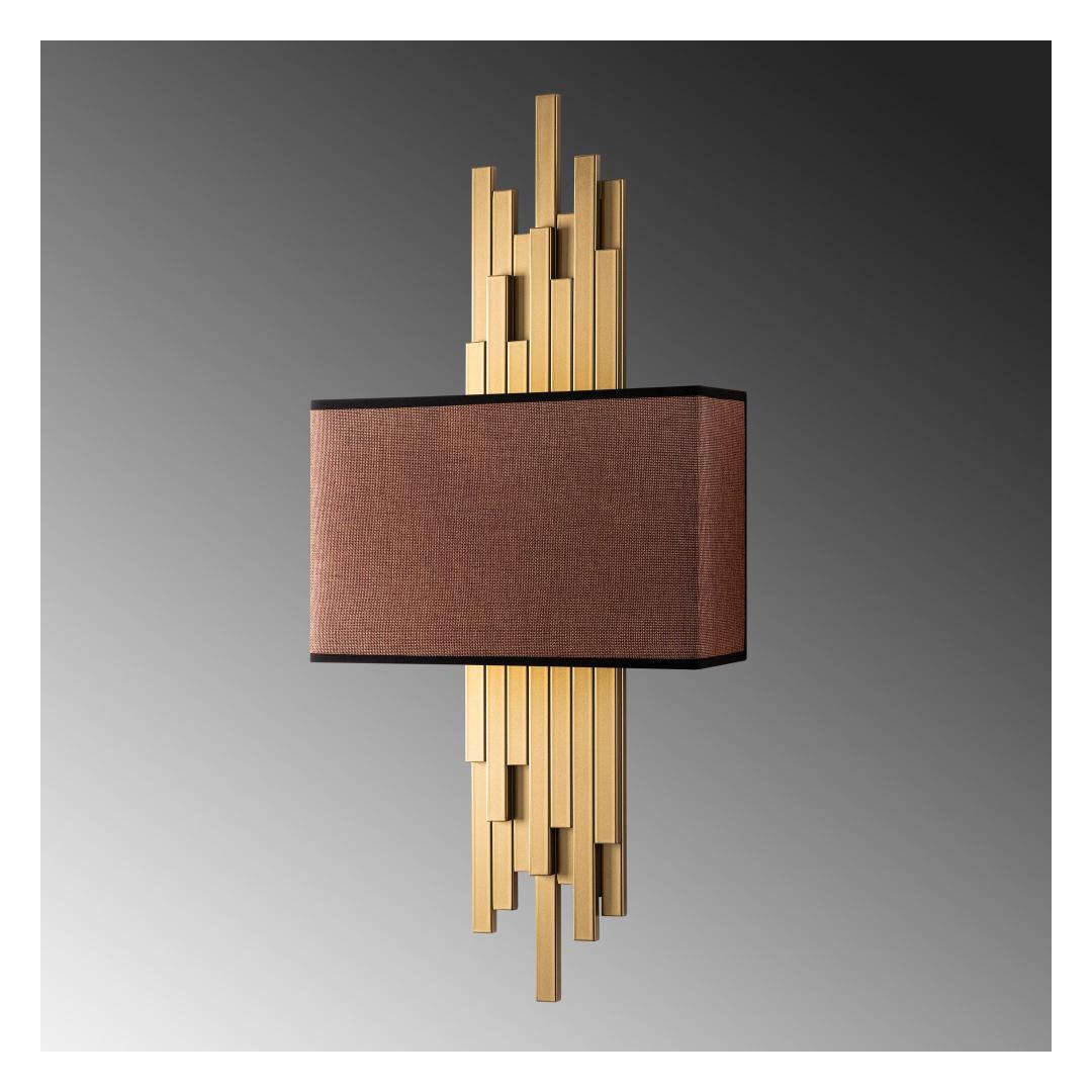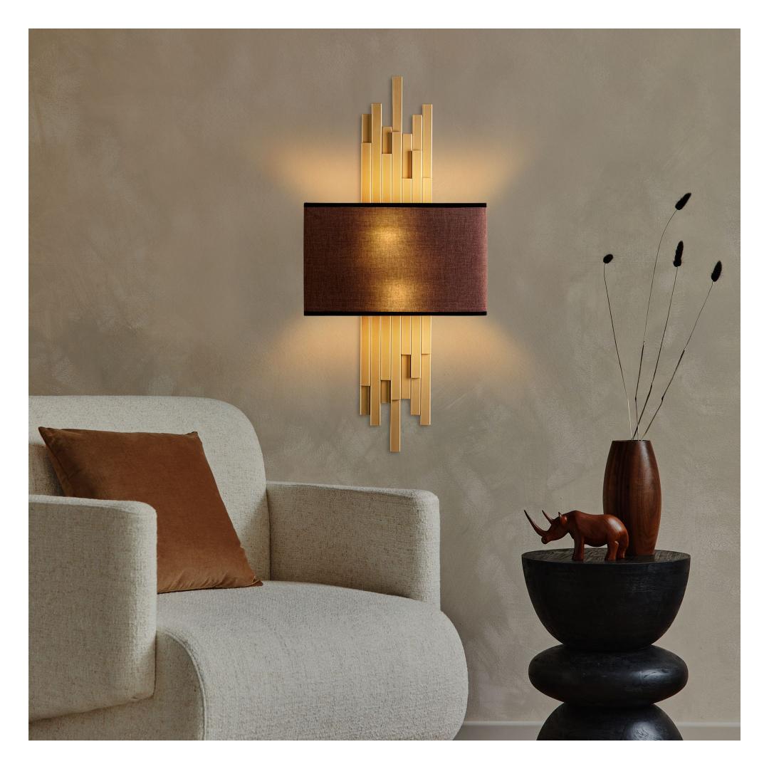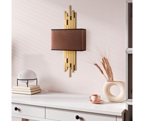 Illuminate your space with our stunning Metal and Fabric Wall Lamp. This exquisite piece will not only light up your room but also add a touch of elegance and sophistication to your decor. The combination of gold and brown colors creates a warm and inviting ambiance, perfect for any room in your home.