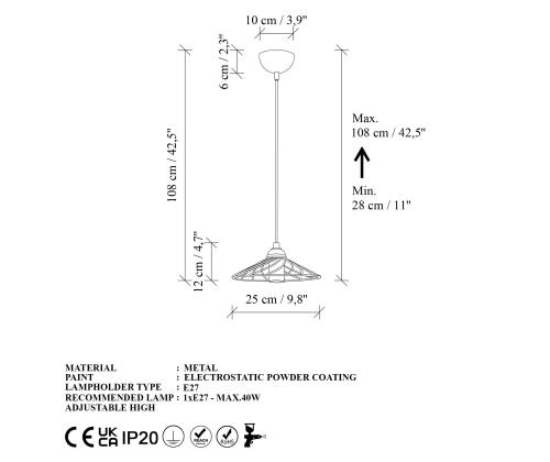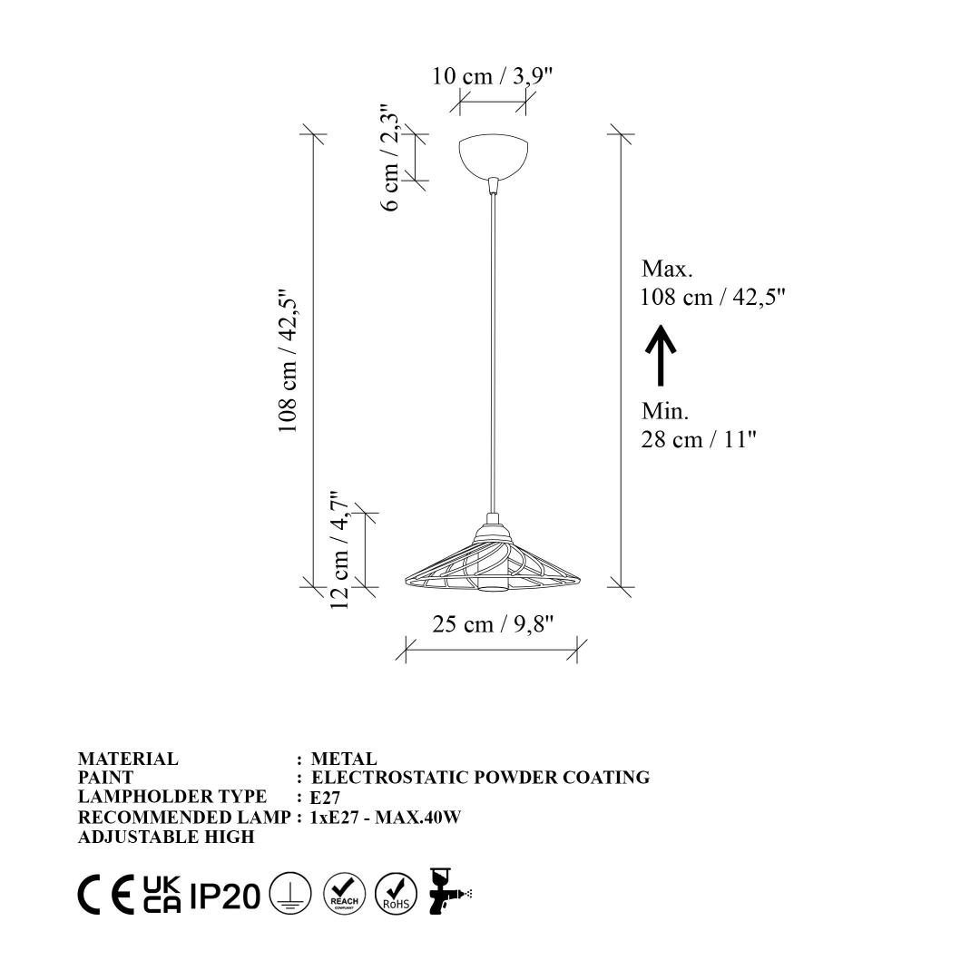 - Socket Type: 1 x E 27 Max 40 W