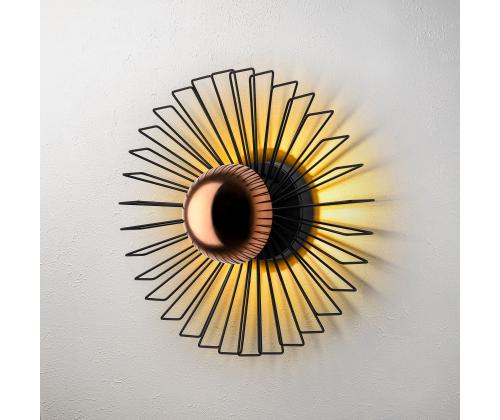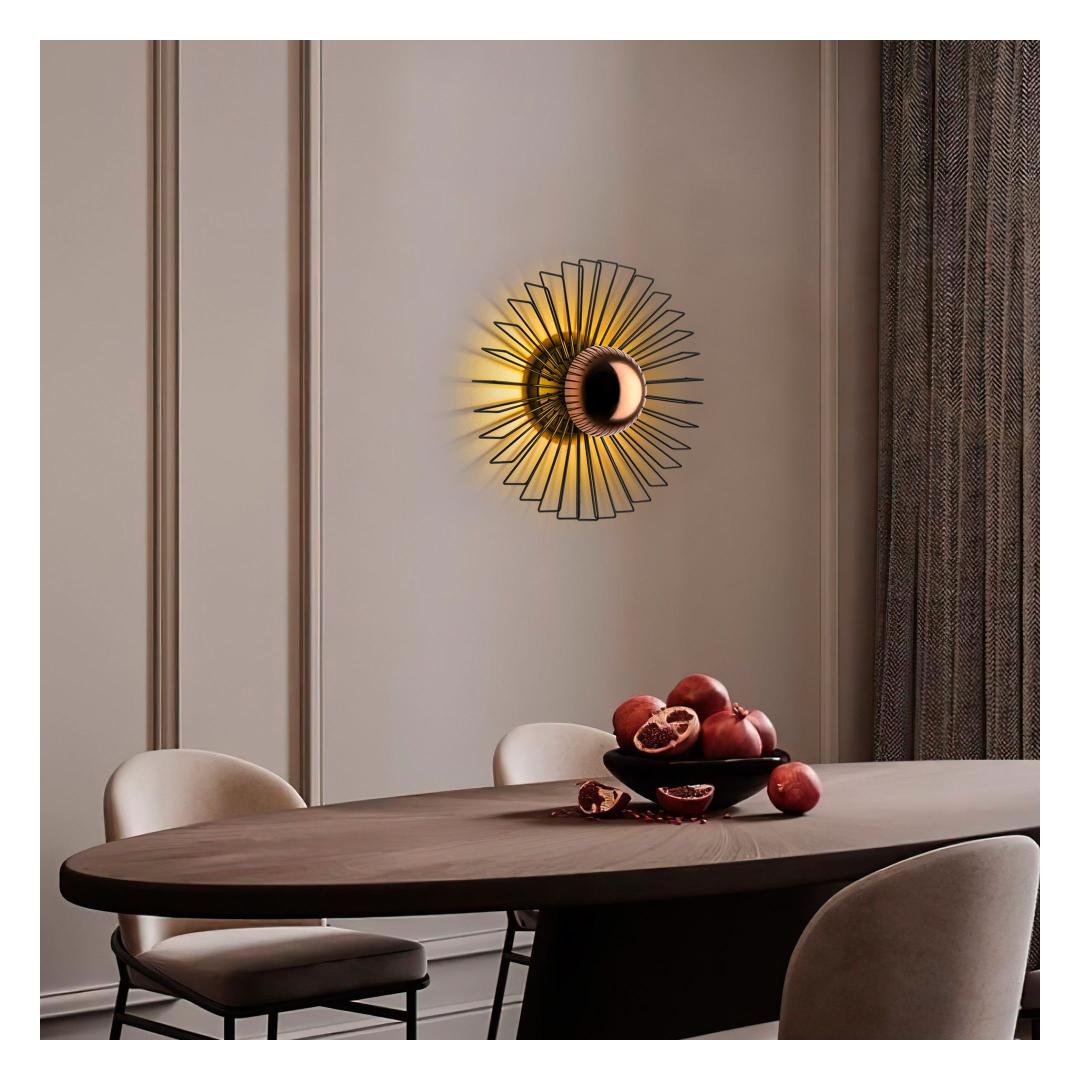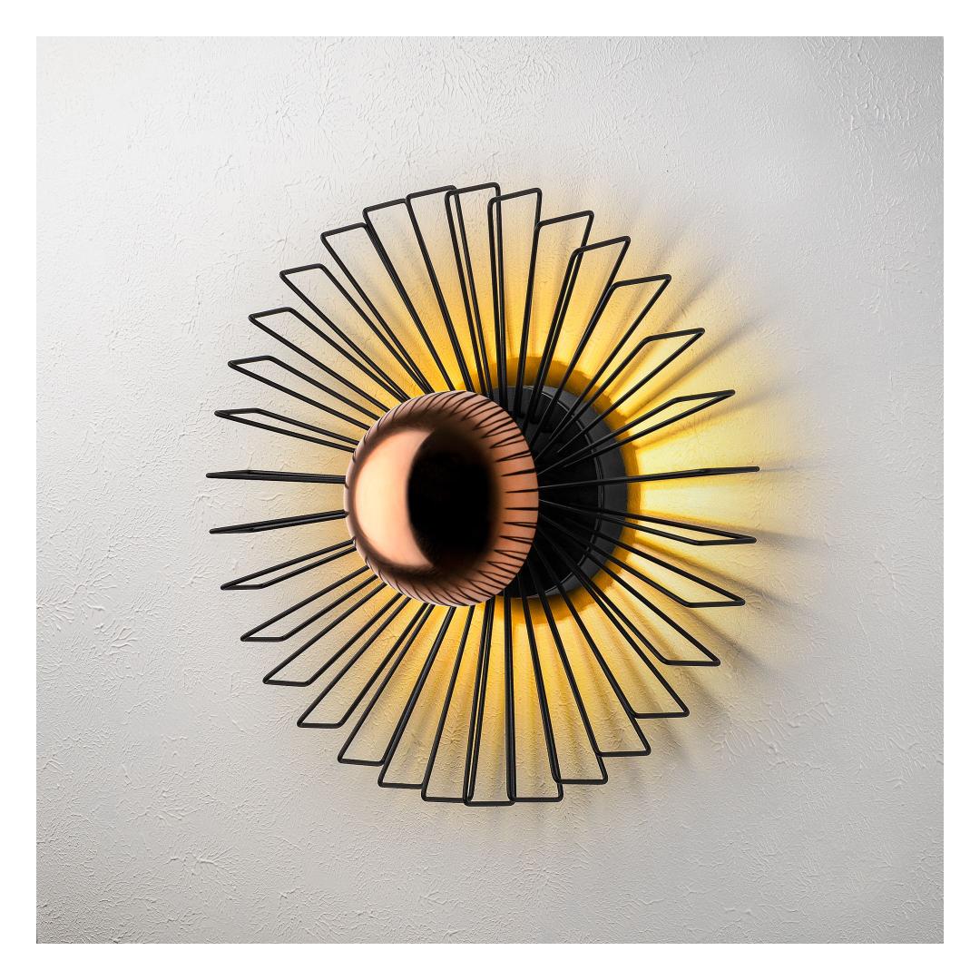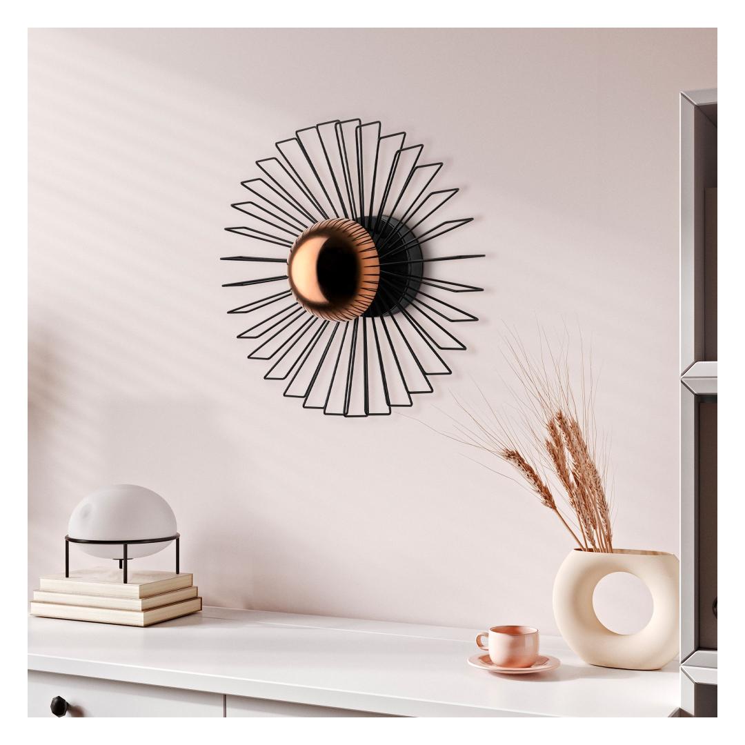 Illuminate your space with our stunning Metal Wall Lamp. This elegant piece features a sleek metal body and cap, adding a touch of sophistication to any room. The black color adds a modern and chic vibe to your decor, while the size of 45 x 45 x 18 cm makes it the perfect statement piece for your wall.