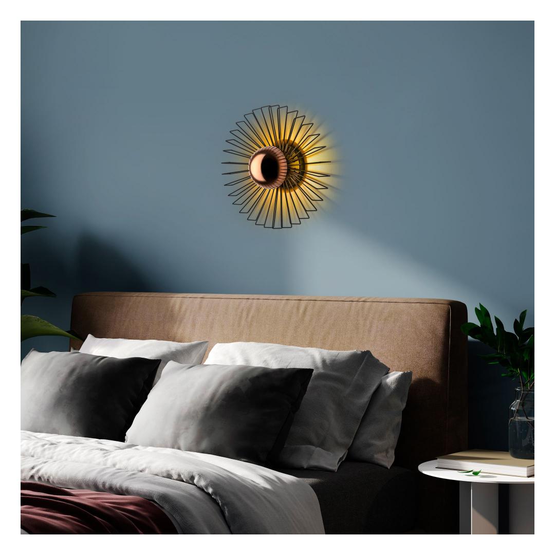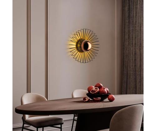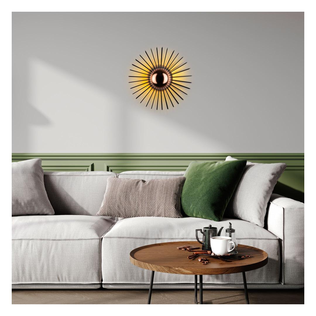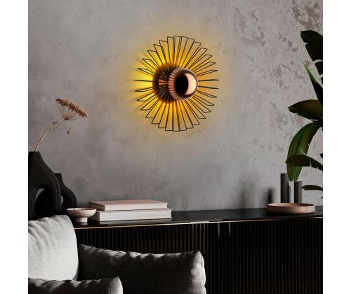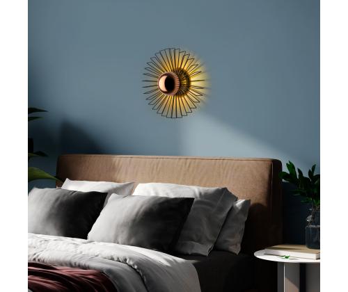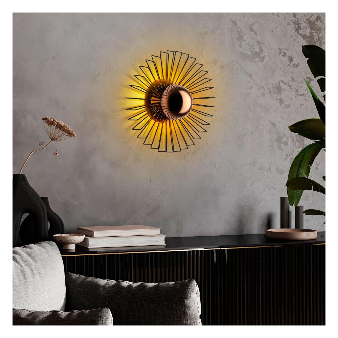 Illuminate your space with our stunning Metal Wall Lamp. This elegant piece features a sleek metal body and cap, adding a touch of sophistication to any room. The black color adds a modern and chic vibe to your decor, while the size of 45 x 45 x 18 cm makes it the perfect statement piece for your wall.