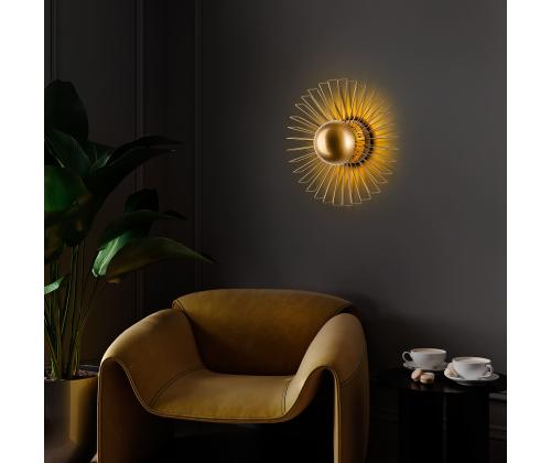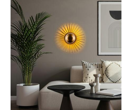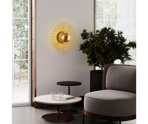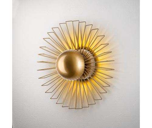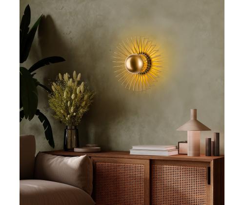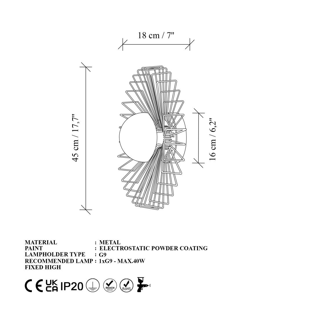 Illuminate your space with elegance and style with our stunning Metal Wall Lamp. This exquisite piece features a sleek metal body with a captivating gold finish, adding a touch of luxury to any room. The metal cap adds a modern touch, while the perfect size of 45 x 45 x 18 cm makes it ideal for any wall in your home.