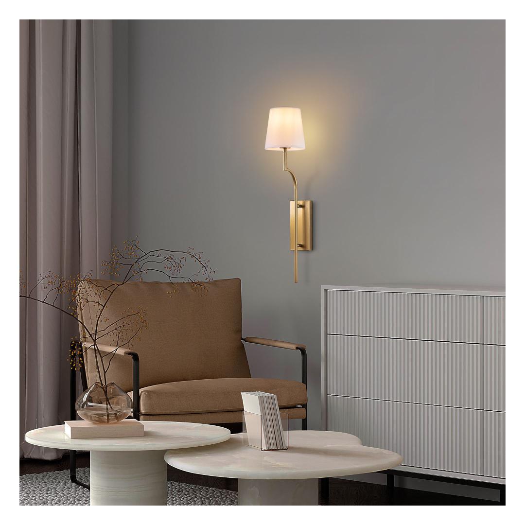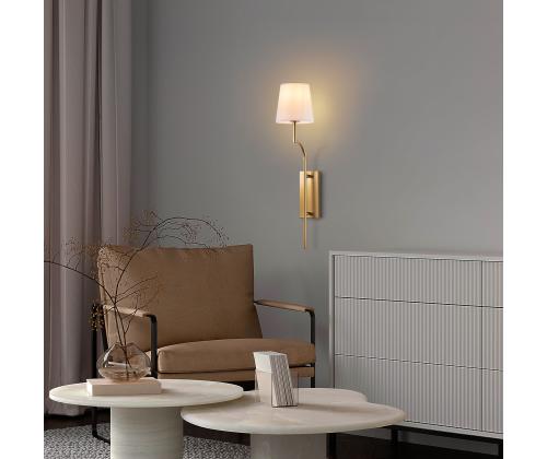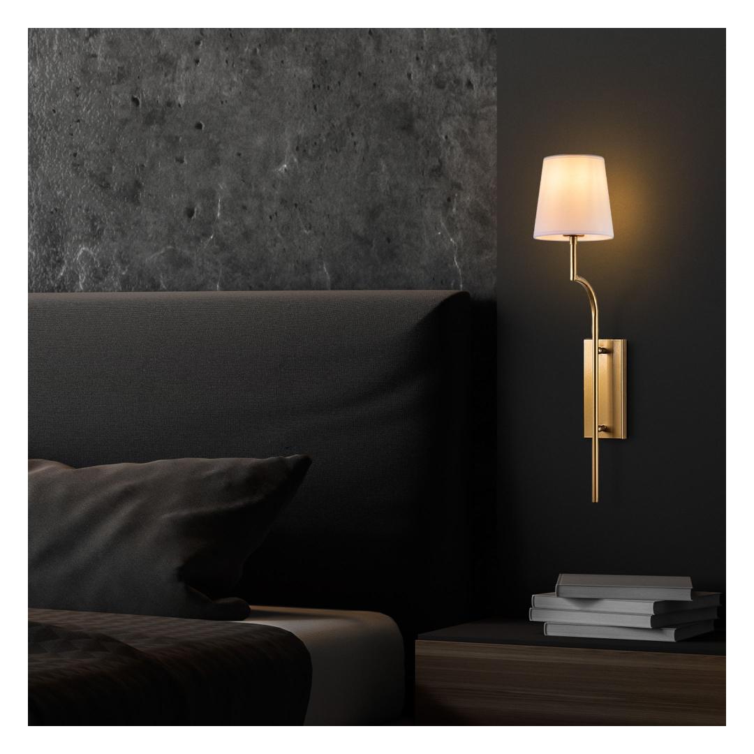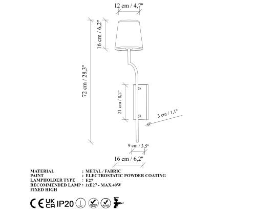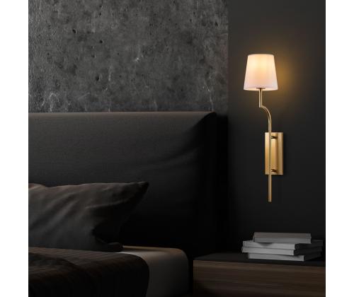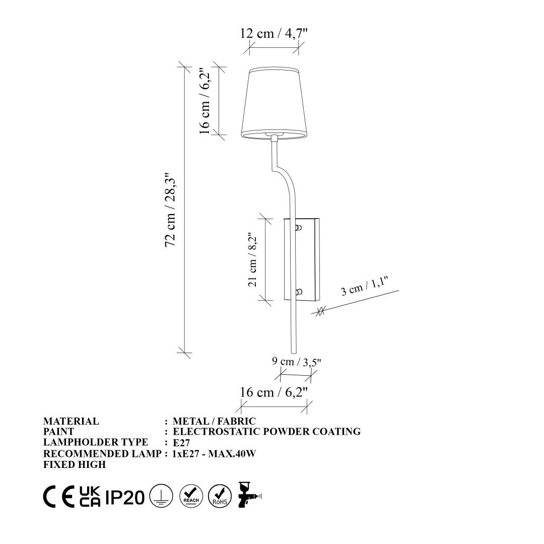 Illuminate your space with elegance and style with our stunning Wall Lamp. This exquisite piece features a sleek metal body and a fabric cap, creating a perfect blend of modern design and classic charm. The gold and white color combination adds a touch of sophistication to any room, making it a versatile addition to your home decor.