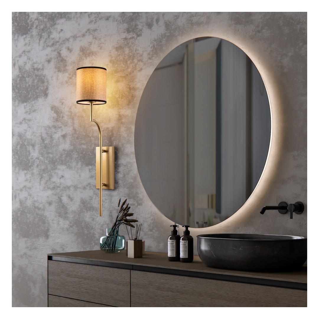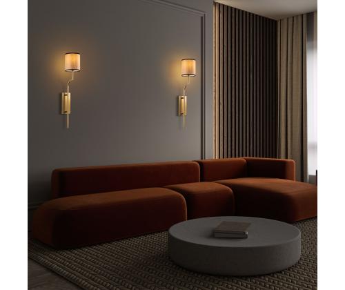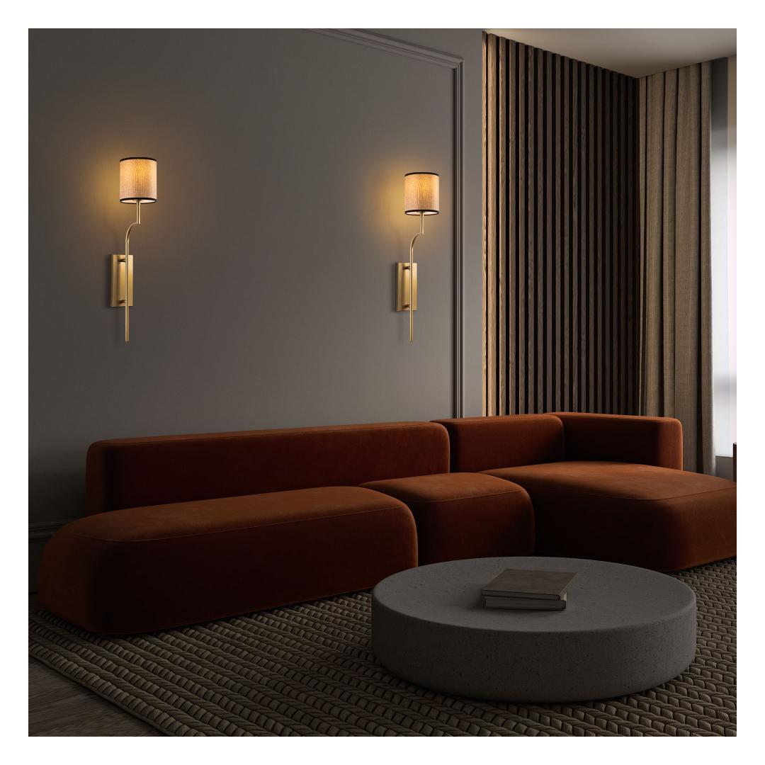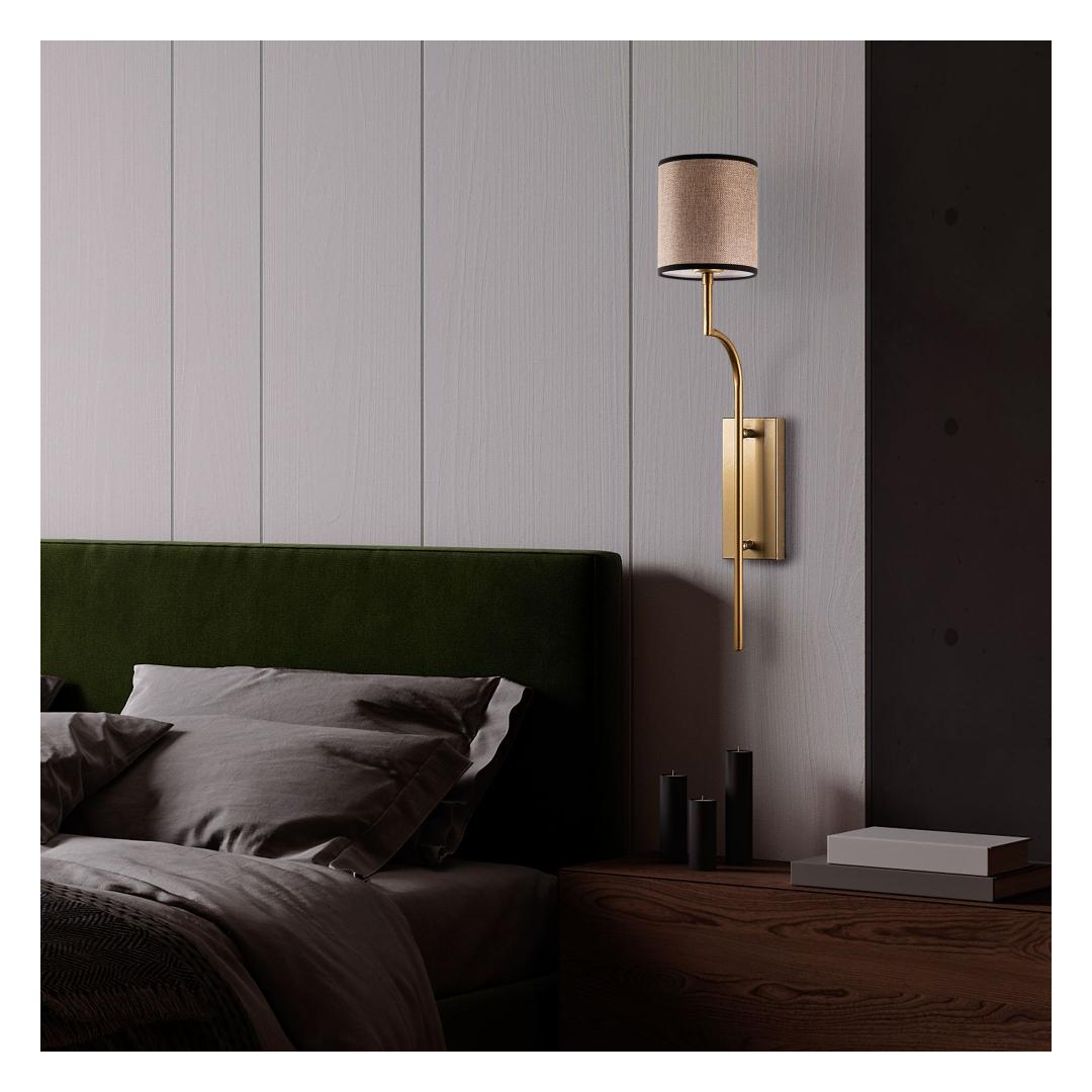 With its gold and light brown color scheme, this wall lamp exudes sophistication and luxury. The sleek metal body and fabric cap add a touch of elegance to any space, making it a stylish addition to your home decor.