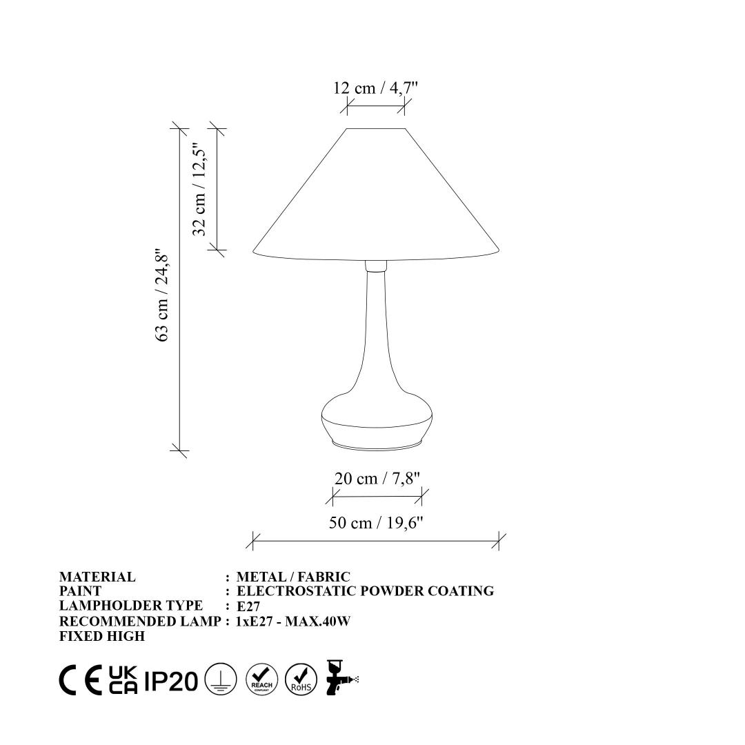 Valgustage oma ruumi elegantse ja modernse metallkehaga lauavalgustiga. See hämmastav lamp omab sujuvat metallkeha ja kangast katet, luues rafineeritud ilme, mis täiustab igat ruumi teie kodus. Stiili ja funktsionaalsuse ideaalne kombinatsioon, see lauavalgusti lisab teie elutuppa, magamistuppa või kontorisse luksusliku puudutuse.Täiustage oma kodu sisustustMetallkehaga lauavalgusti on ideaalne täiendus teie kodu sisustusele. Selle minimalistlik disain ja neutraalne värvipalett muudavad selle hõlpsasti sobivaks igasuguste sisustustüüpidega. Ükskõik, kas eelistate modernset, tööstuslikku või traditsioonilist ilmet, see lamp sulandub sujuvalt ja tõstab teie ruumi atmosfääri.Loo hubane õhkkondSelle sooja ja kutsuva kuma abil loob see lauavalgusti igas toas hubase õhkkonna. Olgu te lugemas raamatut, töötamas projekti kallal või lihtsalt lõõgastumas, selle lambi pehme valgus loob igaks juhuks ideaalse meeleolu.Tehnilised andmed:Suurus: 50 x 50 x 63 cmKate: Ø12-50 h:25 cmPesatüüp: 1 x E 27 Max 40 WPirn ei ole kaasas220-240 VIP kood: IP20Värv: Valge ja must Värv: White Black
