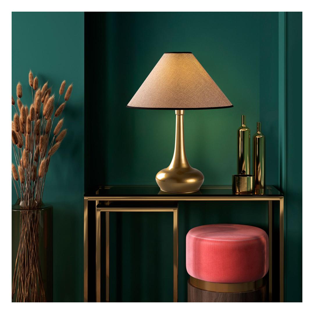 Valgustage oma ruumi elegantsi ja stiiliga meie hämmastava metallkorpusega lauavalgustiga. See peen lamp omab sujuvat metallkorpust ja luksuslikku kangast katet, luues rafineeritud ilme, mis täiustab igat ruumi teie kodus. Kuldse ja heleda pruuni värvi kombinatsioon lisab teie sisustusele soojust ja luksust, muutes selle ideaalseks lisandiks teie elutuppa, magamistuppa või kontorisse.Parandage oma kodu sisustustLisage oma ruumile peenust meie metallkorpusega lauavalgustiga. Elegantne disain ja luksuslik viimistlus muudavad selle mitmekülgseks osaks, mis täiustab igasugust sisustust. Olgu see siis külglauda, öölauale või kirjutuslauale asetatud, tõstab see lamp koheselt teie ruumi ilmet ja loob hubase ning kutsuva atmosfääri.Looge soe ja kutsuv õhkkondLambi pehme kuma loob igas ruumis sooja ja kutsuva õhkkonna. Olgu te lugemas raamatut, töötamas projekti kallal või lihtsalt lõõgastumas, õrn valgus pakub täiuslikku valgustust, ilma et see oleks liiga terav või ülekaalukas.Tehnilised andmed:Suurus: 50 x 50 x 63 cmKate: Ø12-50 h:25 cmPesatüüp: 1 x E 27 Max 40 WPirn ei ole kaasas220-240 VIP kood: IP20Värv: Kuldne ja helepruun Värv: Gold Light Brown