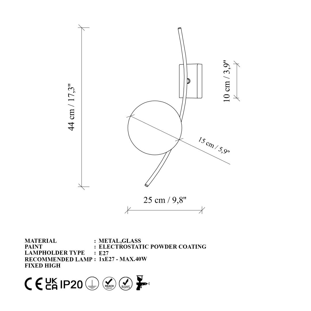 - Socket Type: 1 x E 27 Max 40 W