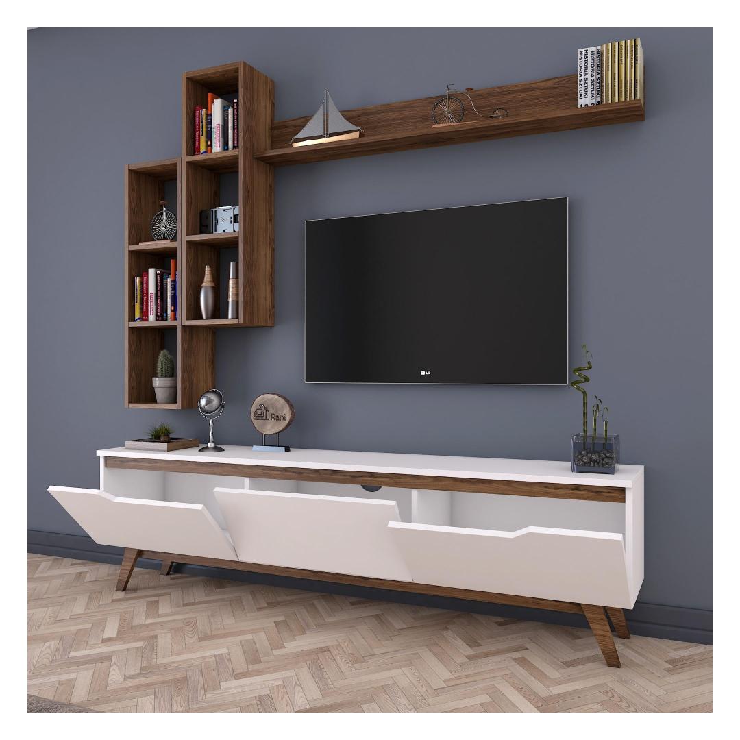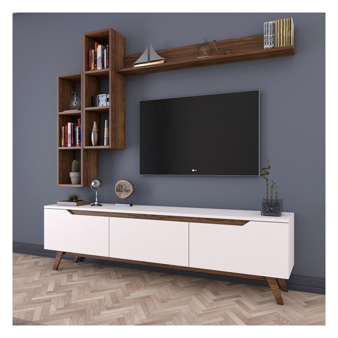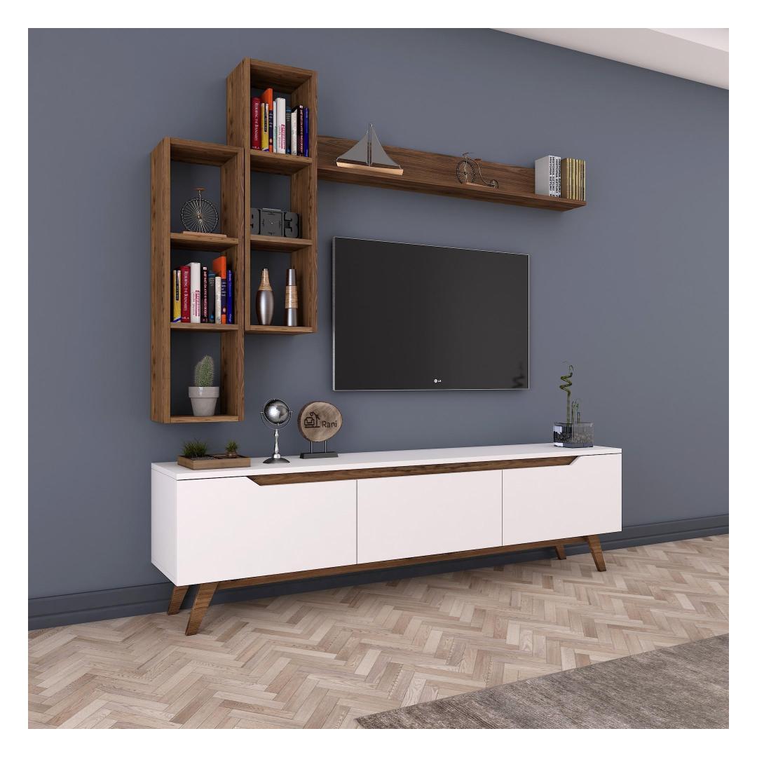 Loo meie televiisoriga vapustav ja funktsionaalne elutubaMuuda oma elutuba stiilseks ja organiseeritud elutoaks meie teleriga. Valmistatud 100% melamiiniga kaetud puitlaastplaadist, ei ole see üksus mitte ainult vastupidav, vaid ka elegantse välimusega. Kõrgendage oma kodu sisekujundust skandinaavia disainigaMeie teleriboks lisab oma elegantse ja minimalistliku skandinaavia disainiga igale ruumile elegantsust. Valge ja pähklipuu värvi kombinatsioon loob moodsa ja ajatu välimuse, mis sobitub vaevata mis tahes sisustusstiiliga.Rikkalik panipaik teie meelelahutusvajaduste jaoksMeie televiisoril on palju riiuleid ja täiendavat hoiuruumi, mis pakub piisavalt ruumi, et hoida oma meediaseadmeid, dvd-d ja muid olulisi esemeid organiseeritult ja kergesti ligipääsetavana. Ütle hüvasti segadusele ja tere korrastatud elutoale. Versatiivne ja praktiline disainMeie telerikomplekt ei ole lihtsalt eraldiseisev mööblitükk. Seda saab kinnitada seina külge, mis võimaldab teil säästa väärtuslikku põrandapinda ja luua oma toas avatuma ja avarama tunde. Kaasasolevad seinariiulid pakuvad veelgi rohkem hoiuvõimalusi ja neid saab paigutada vastavalt teie isikliku stiili järgi. Tehnilised üksikasjad:Materjal: Materjal: Materjal: Materjal: Materjal: Materjal: Materjal: Materjal: materjal: 100% melamiiniga kaetud puitlaastplaatPaksus: 18 mmTeleri statiiv: 6 cm, sügavus: 35 cm.Seina riiul (2 tk): Laius: 22. 1 cm, kõrgus: 90 cm, sügavus: 20. 3 cmSeinariiul (1 tk): Laius: 133 cm, kõrgus: 15 cm, sügavus: 15 cmSeinariiul (1 tk): Laius: 133 cm, kõrgus: 15 cm, sügavus: 15 cmVärv: valge ja pähkelpuuUuendage oma eluruumi meie teleriga ja kogege stiili ja funktsionaalsuse täiuslikku segu. Tellige kohe ja looge ruum, kuhu teile meeldib koju tulla. Värv: White Walnut