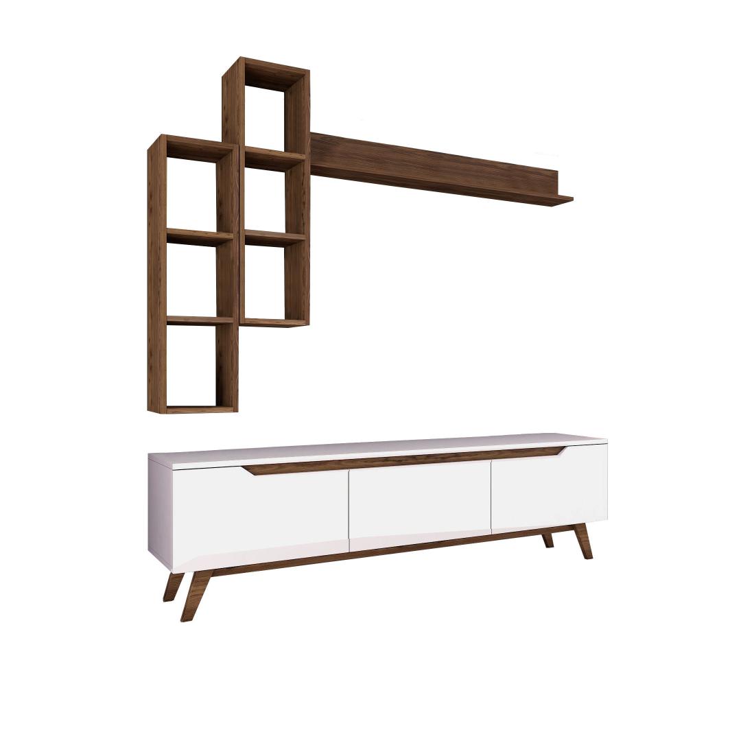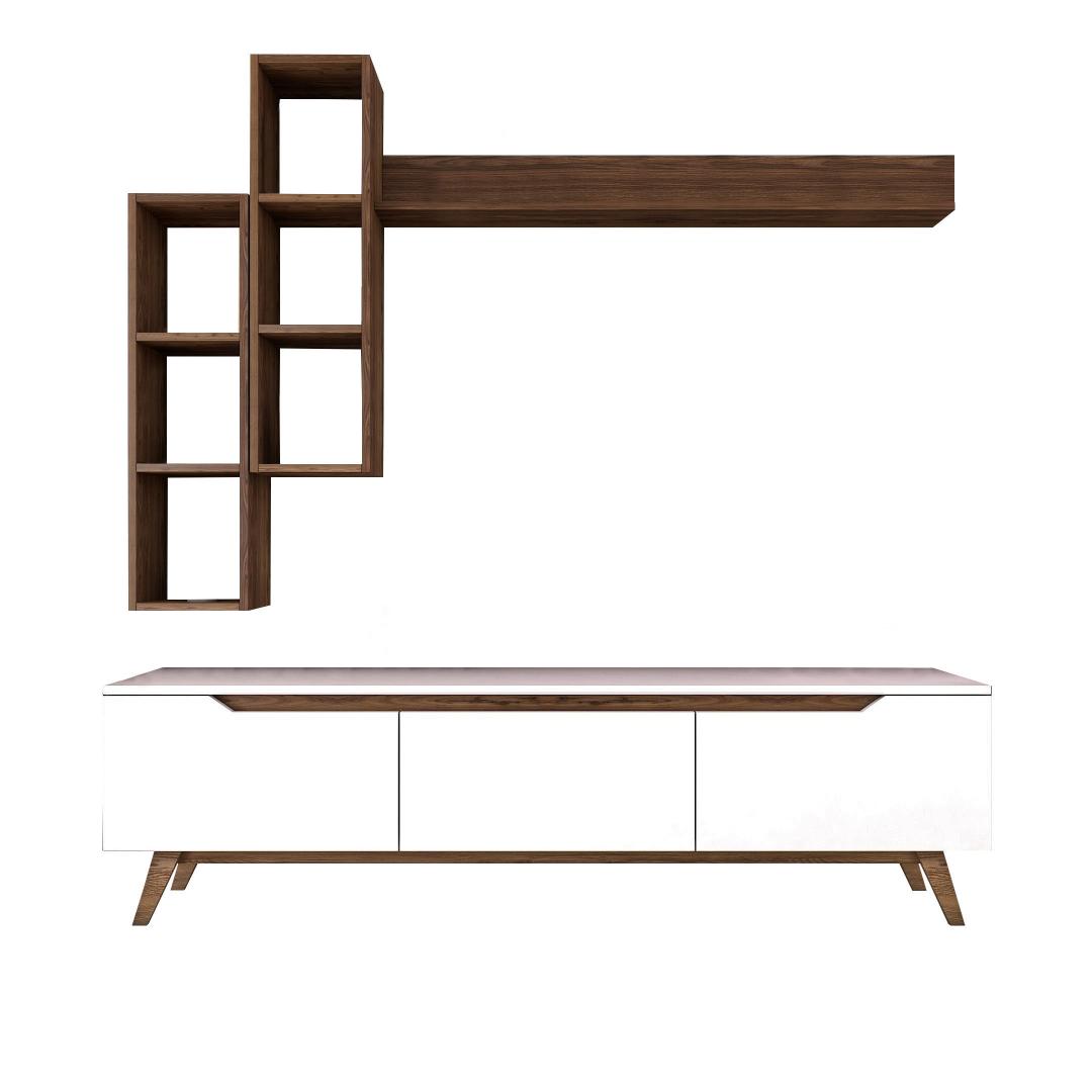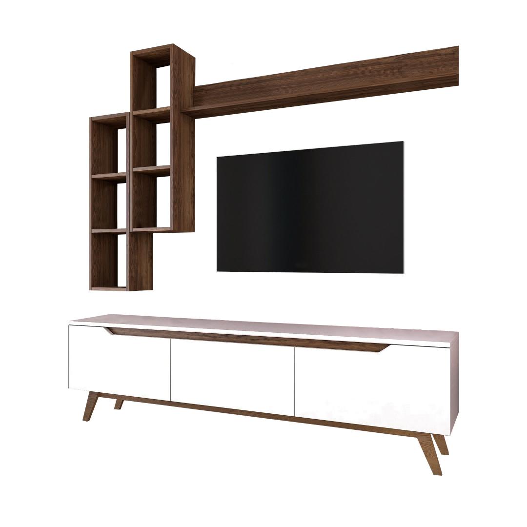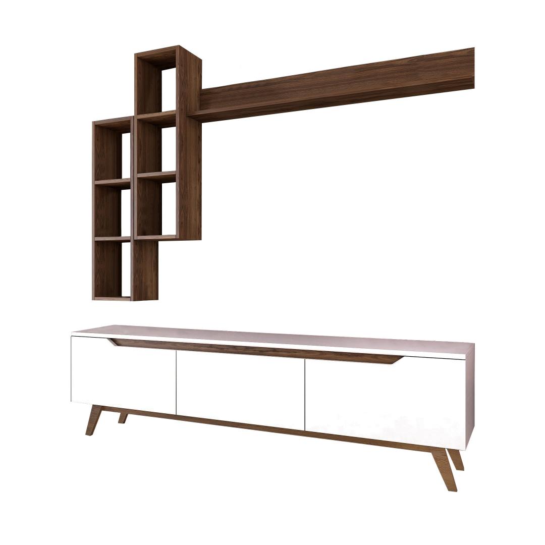 Loo meie televiisoriga vapustav ja funktsionaalne elutubaMuuda oma elutuba stiilseks ja organiseeritud elutoaks meie teleriga. Valmistatud 100% melamiiniga kaetud puitlaastplaadist, ei ole see üksus mitte ainult vastupidav, vaid ka elegantse välimusega. Kõrgendage oma kodu sisekujundust skandinaavia disainigaMeie teleriboks lisab oma elegantse ja minimalistliku skandinaavia disainiga igale ruumile elegantsust. Valge ja pähklipuu värvi kombinatsioon loob moodsa ja ajatu välimuse, mis sobitub vaevata mis tahes sisustusstiiliga.Rikkalik panipaik teie meelelahutusvajaduste jaoksMeie televiisoril on palju riiuleid ja täiendavat hoiuruumi, mis pakub piisavalt ruumi, et hoida oma meediaseadmeid, dvd-d ja muid olulisi esemeid organiseeritult ja kergesti ligipääsetavana. Ütle hüvasti segadusele ja tere korrastatud elutoale. Versatiivne ja praktiline disainMeie telerikomplekt ei ole lihtsalt eraldiseisev mööblitükk. Seda saab kinnitada seina külge, mis võimaldab teil säästa väärtuslikku põrandapinda ja luua oma toas avatuma ja avarama tunde. Kaasasolevad seinariiulid pakuvad veelgi rohkem hoiuvõimalusi ja neid saab paigutada vastavalt teie isikliku stiili järgi. Tehnilised üksikasjad:Materjal: Materjal: Materjal: Materjal: Materjal: Materjal: Materjal: Materjal: materjal: 100% melamiiniga kaetud puitlaastplaatPaksus: 18 mmTeleri statiiv: 6 cm, sügavus: 35 cm.Seina riiul (2 tk): Laius: 22. 1 cm, kõrgus: 90 cm, sügavus: 20. 3 cmSeinariiul (1 tk): Laius: 133 cm, kõrgus: 15 cm, sügavus: 15 cmSeinariiul (1 tk): Laius: 133 cm, kõrgus: 15 cm, sügavus: 15 cmVärv: valge ja pähkelpuuUuendage oma eluruumi meie teleriga ja kogege stiili ja funktsionaalsuse täiuslikku segu. Tellige kohe ja looge ruum, kuhu teile meeldib koju tulla. Värv: White Walnut