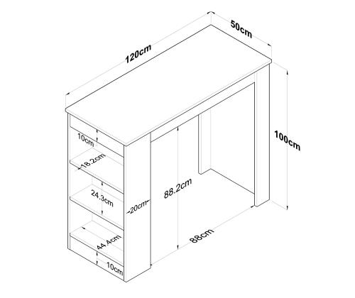 Width: 120 cm Height: 100 cm Depth: 50 cm