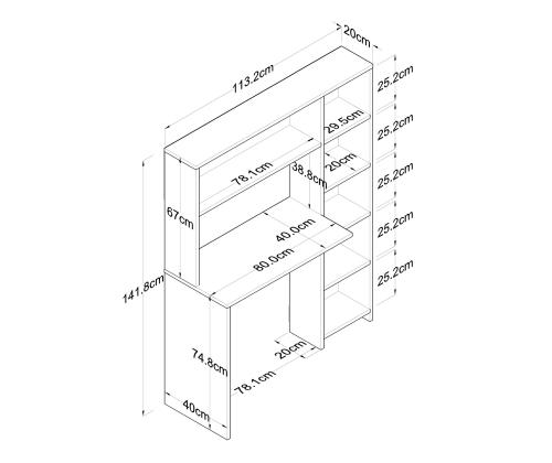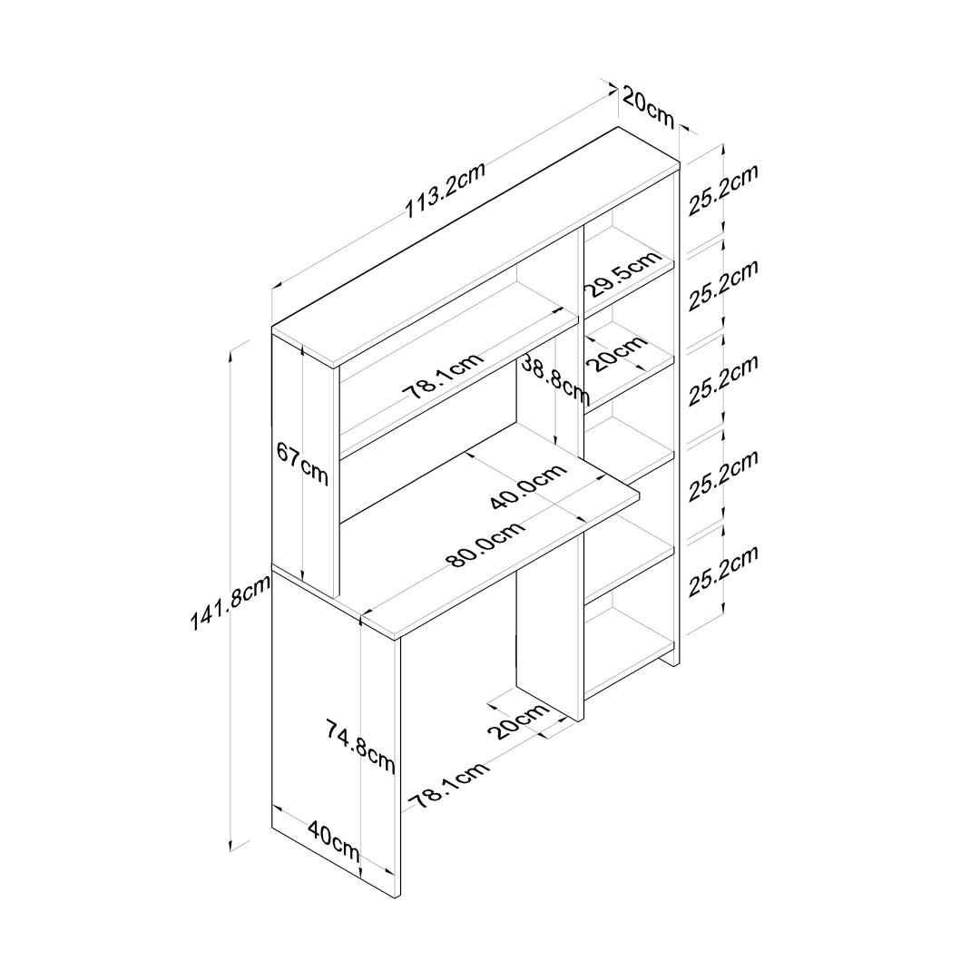 Transformeeri oma tööruum elegantse skandinaavia töölauagaLooge meie skandinaavia õppelaua abil produktiivsust ja loovust inspireeriv õpperuum. See 100% melamiiniga kaetud puitlaastplaadist valmistatud kirjutuslaud ei ole mitte ainult vastupidav, vaid lisab ka elegantsi igasse ruumi. Rikkalik panipaik kõigile olulistele asjadeleMeie õppelaua arvukate riiulite ja täiendavate hoiukohtadega pakub piisavalt ruumi, et hoida oma raamatud, kirjatarbed ja muud olulised õppetarbed organiseeritult ja käeulatuses. Raamaturiiuli suurus on 29. 5 cm lai ja 141. 8 cm kõrgus pakub piisavalt ruumi teie lemmiklugemiseks. Kogege mugavust ja stiiliKirjutuslaua suurusega 80 cm laius ja 74. 8 cm kõrgusega pakub meie töölaud mugavat ja ruumikat tööpinda. Stiilne skandinaavia disain lisab teie tööruumile kaasaegse nüansi, mis muudab selle täiuslikuks mugavuse ja stiili seguks. Tehnilised üksikasjad:Kogumõõt: Laius: 113. 2 cm, kõrgus: 141. 8 cm, sügavus: 40 cmLaua suurus: Laius: 80 cm, kõrgus: 74. 8 cm, sügavus: 40 cm.Raamaturiiuli suurus: Laius: 29. 5 cm, kõrgus: 141. 8 cm, sügavus: 20 cmRiiuli kõrgus: 25. 2 cmMaksimaalne kandevõime: 35 kgVärv: valgeElustage oma tööruum ja suurendage oma tootlikkust meie skandinaavia töölaua abil. Tellige kohe ja kogege funktsionaalsuse ja elegantsi täiuslikku segu. Värv: White