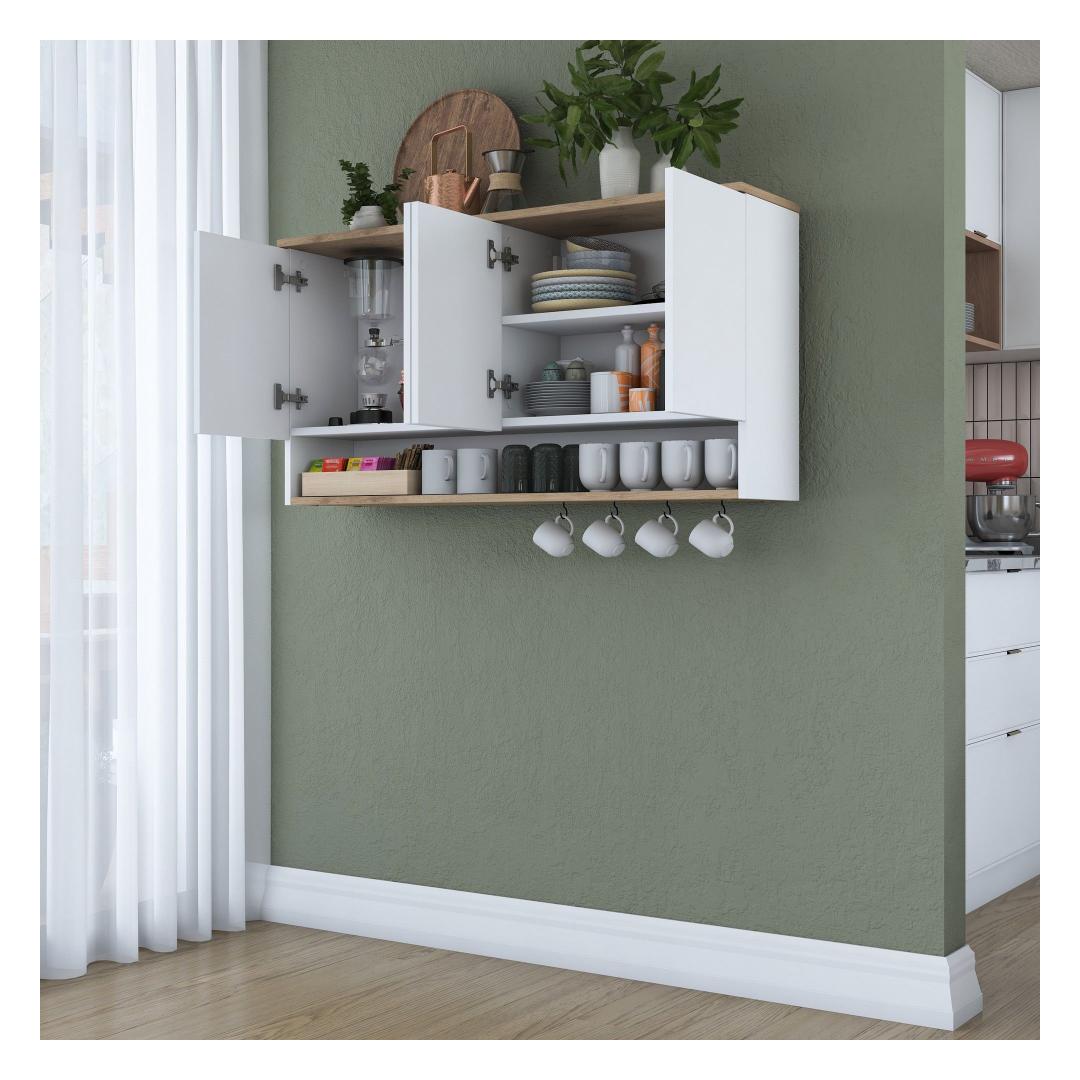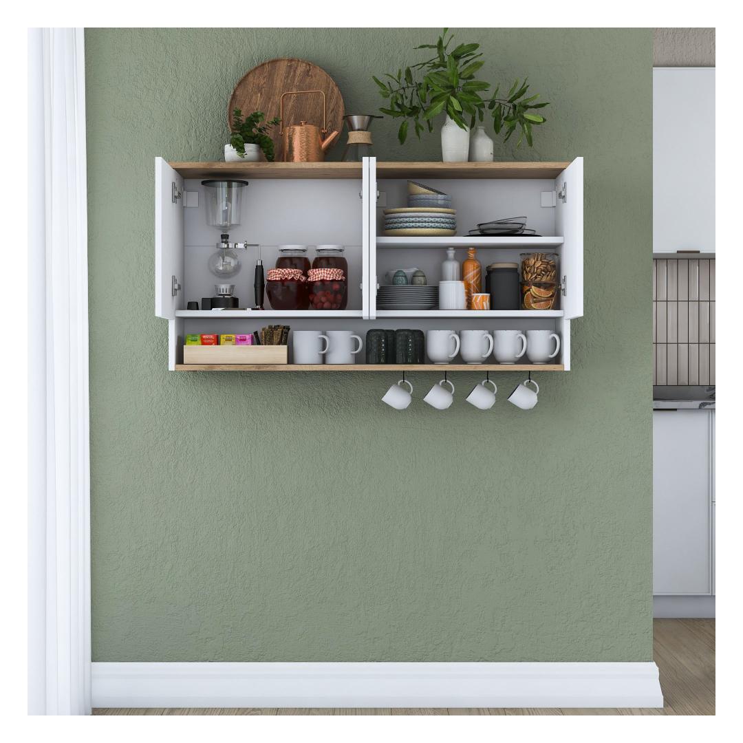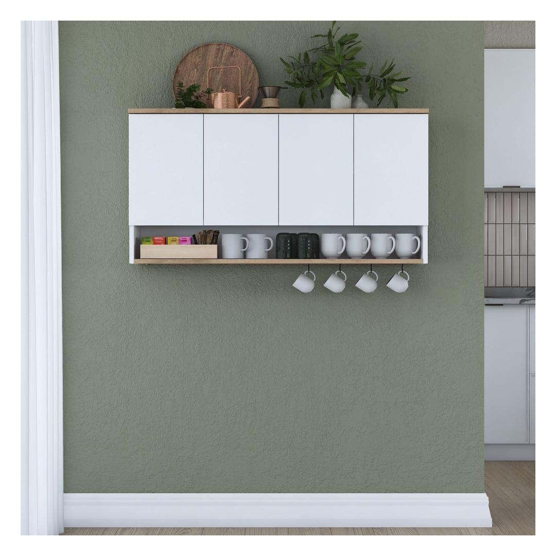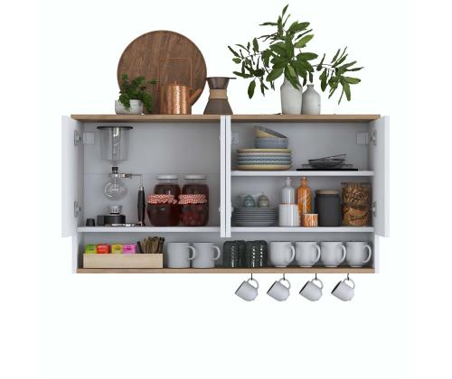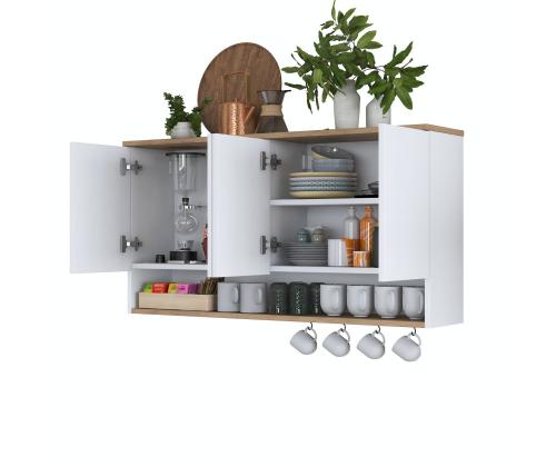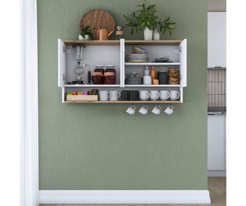 With cup hangers, numerous shelves, and additional storage space, this wall cabinet offers plenty of room to organize your belongings. Keep your space clutter-free and showcase your favorite items with ease.