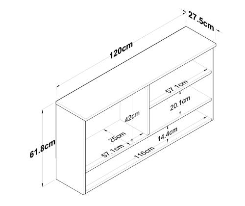 Width: 120 cm Height: 61,8 cm Depth: 27,5 cm