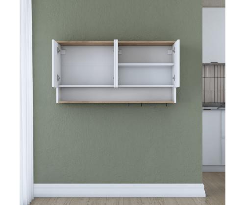 The sleek design of this wall cabinet adds a touch of sophistication to any room, while the combination of walnut and white colors creates a modern and stylish look. Whether you want to display your favorite decorations or store your essentials, this cabinet is the perfect solution.