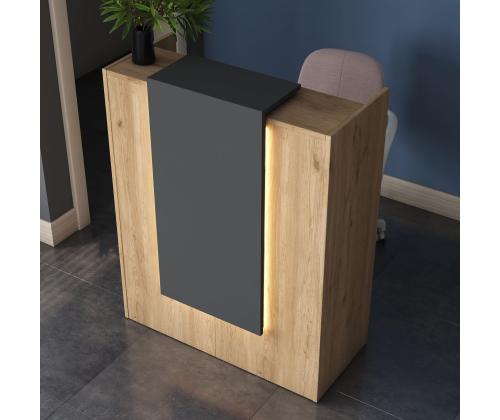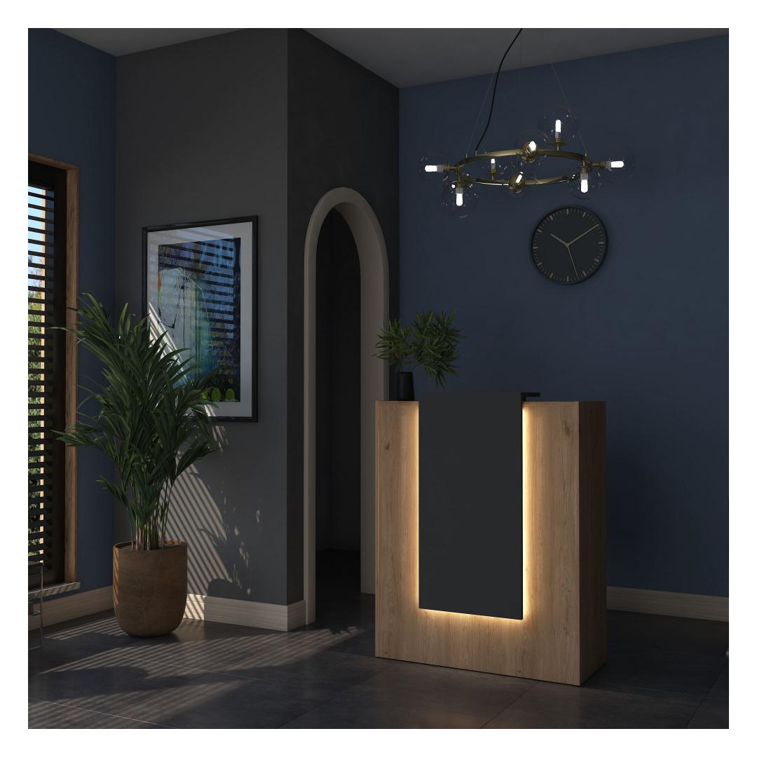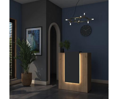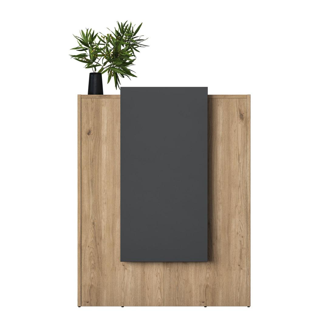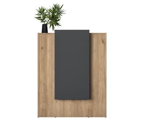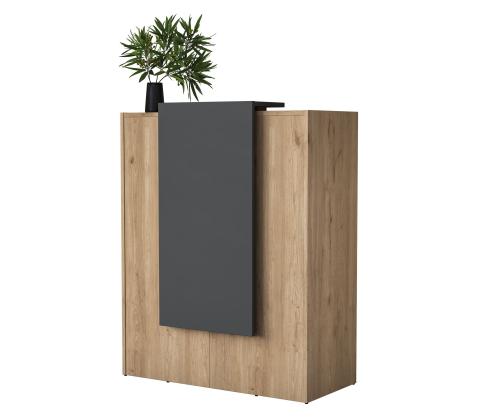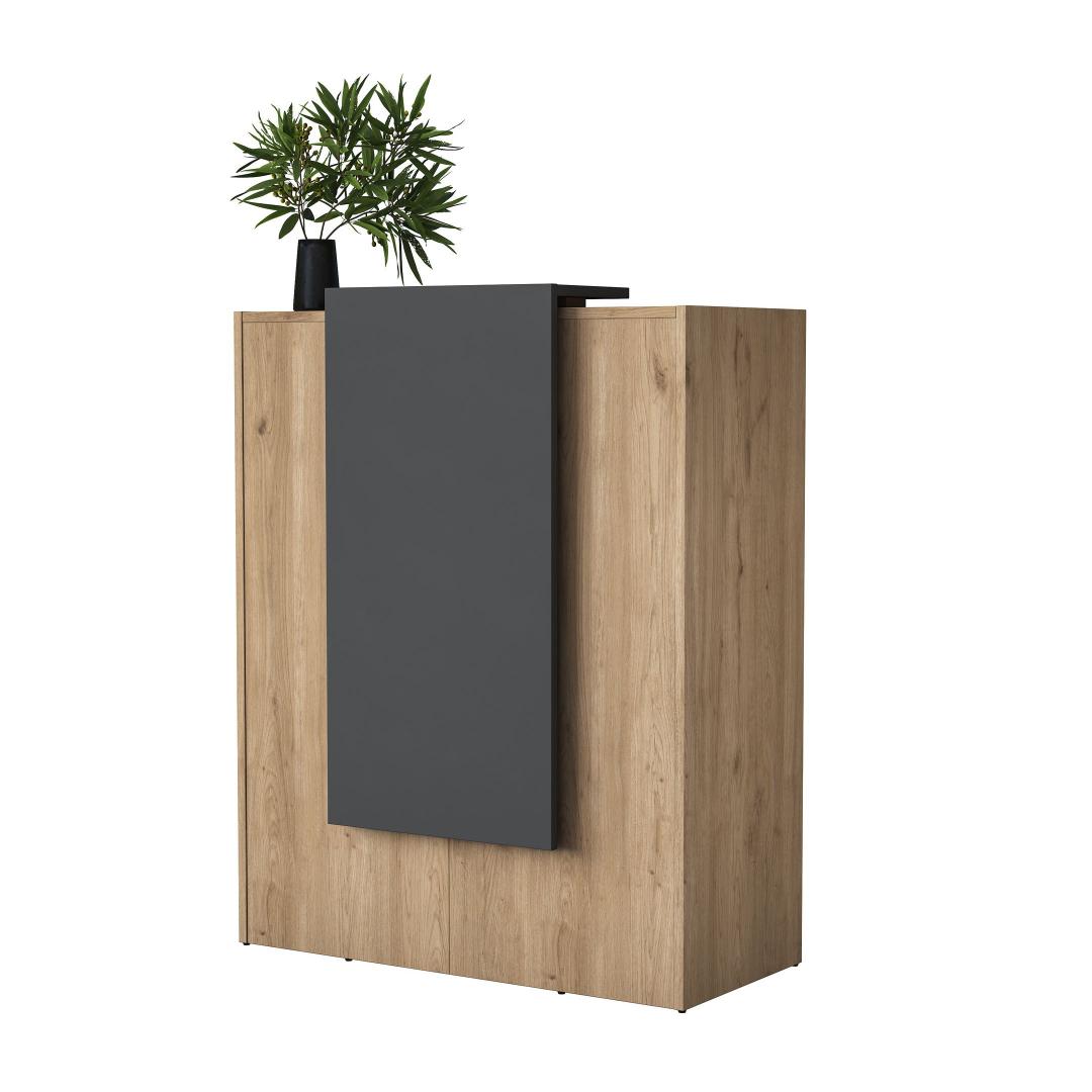 Muuda oma vastuvõtuala kutsuvaks ja stiilseks ruumiks meie hämmastava vastuvõtulaudaga. Valmistatud 100% melamiinkattega E1 kvaliteediga puitlaastplaadist, on see laud mitte ainult vastupidav, vaid kiirgab ka elegantsi ja rafineeritust. Sujuv disain, mis ühendab pähkli ja antriidi värvid, tõstab koheselt sinu kontori või tööruumi esteetikat.Tõsta oma ruumiJäta oma klientidele ja külalistele püsiv mulje selle vastuvõtulaudaga, mis ühendab funktsionaalsuse stiiliga. Kaasaegne disain ja kvaliteetsed materjalid tagavad, et sinu vastuvõtuala peegeldab professionaalsust ja rafineeritust.Vastupidav ja stiilneValmistatud 18 mm paksusest puitlaastplaadist melamiinkattega, on see laud loodud kestma. Pähkli ja antriidi värvid lisavad igale ruumile elegantsi, muutes selle ideaalseks lisandiks sinu vastuvõtualale.Tehnilised andmed:Materjal: 100% melamiinkattega E1 kvaliteediga puitlaastplaatPaksus: 18 mmLaius: 90 cmKõrgus: 110 cmSügavus: 40 cmVärv: Pähkel ja antriit Värv: Walnut Anthracite
