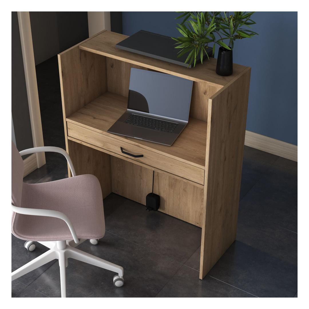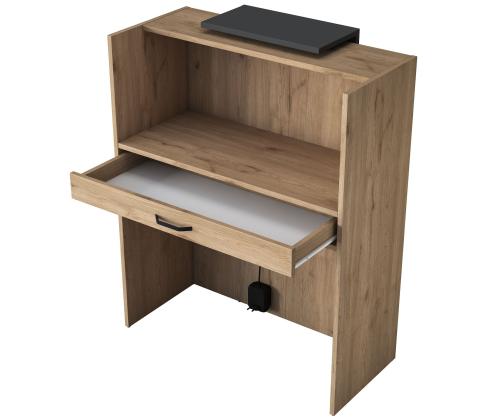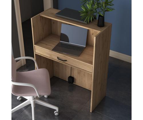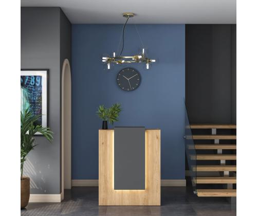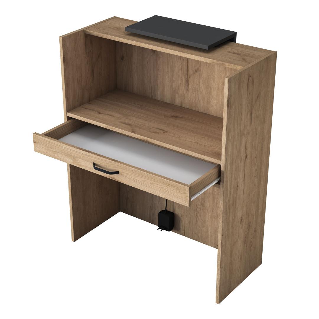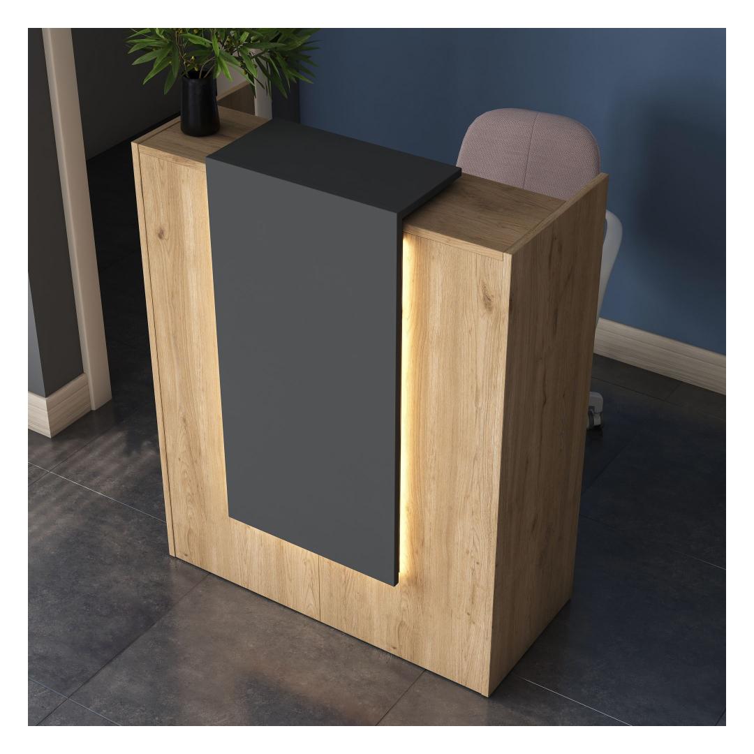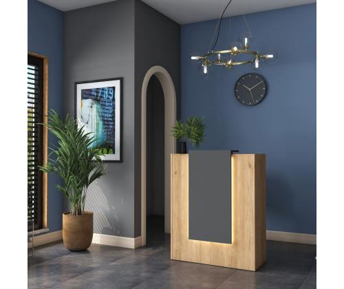 Muuda oma vastuvõtuala kutsuvaks ja stiilseks ruumiks meie hämmastava vastuvõtulaudaga. Valmistatud 100% melamiinkattega E1 kvaliteediga puitlaastplaadist, on see laud mitte ainult vastupidav, vaid kiirgab ka elegantsi ja rafineeritust. Sujuv disain, mis ühendab pähkli ja antriidi värvid, tõstab koheselt sinu kontori või tööruumi esteetikat.Tõsta oma ruumiJäta oma klientidele ja külalistele püsiv mulje selle vastuvõtulaudaga, mis ühendab funktsionaalsuse stiiliga. Kaasaegne disain ja kvaliteetsed materjalid tagavad, et sinu vastuvõtuala peegeldab professionaalsust ja rafineeritust.Vastupidav ja stiilneValmistatud 18 mm paksusest puitlaastplaadist melamiinkattega, on see laud loodud kestma. Pähkli ja antriidi värvid lisavad igale ruumile elegantsi, muutes selle ideaalseks lisandiks sinu vastuvõtualale.Tehnilised andmed:Materjal: 100% melamiinkattega E1 kvaliteediga puitlaastplaatPaksus: 18 mmLaius: 90 cmKõrgus: 110 cmSügavus: 40 cmVärv: Pähkel ja antriit Värv: Walnut Anthracite