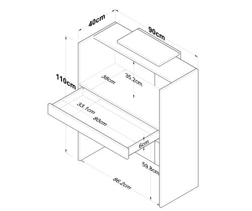 Width: 90 cm Height: 110 cm Depth: 40 cm