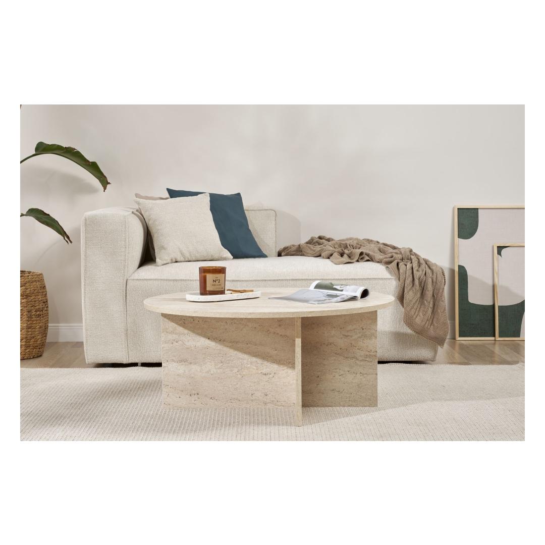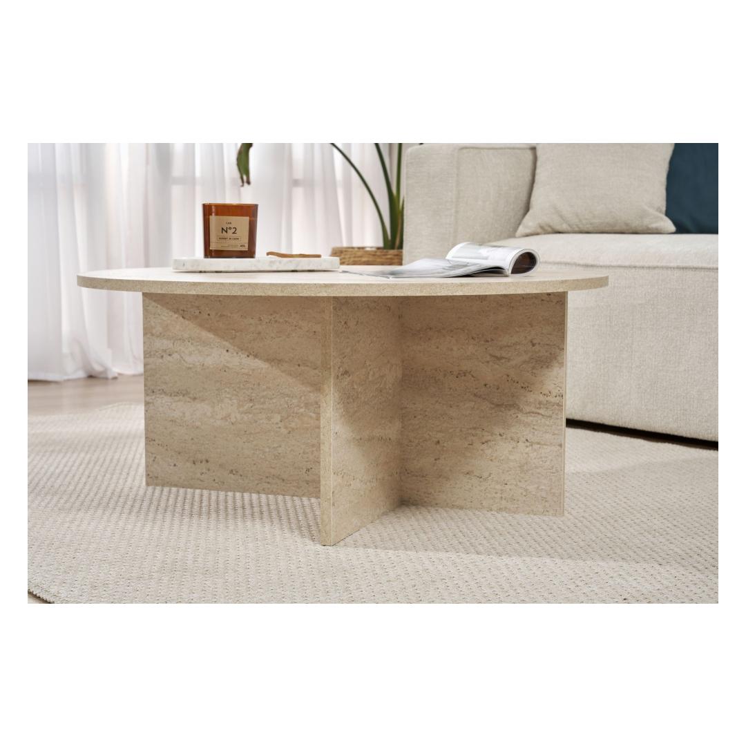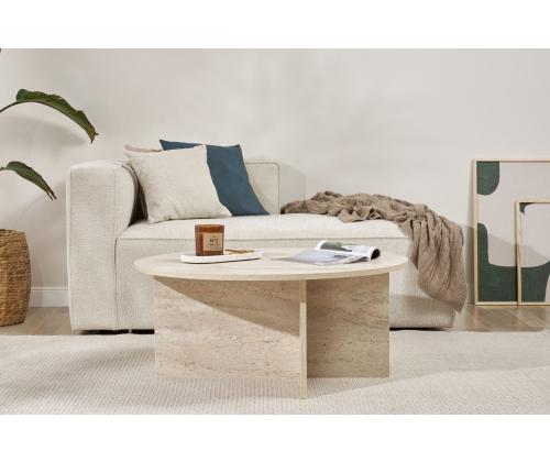 Muuda oma eluruum meie kauni Travertine kohvilaudaga. See elegantne ese lisab igasse ruumi rafineerituse ja stiili, luues sooja ja kutsuva atmosfääri sinu ja sinu külaliste jaoks.Tõsta oma ruumiSelle kohvilauda sujuv disain ja kaasaegne viimistlus tõstavad koheselt sinu elutoa välimust. Selle Travertine'i värv lisab luksuse ja rafineerituse puudutuse, muutes selle ideaalseks keskpunktiks sinu kodus.Kestlik ja funktsionaalneValmistatud 100% melamiinkattega puitlaastplaadist, on see kohvilaud mitte ainult stiilne, vaid ka vastupidav ja pikaealine. 18 mm paksus tagab stabiilsuse ja tugevuse, samas kui 20 kg kandevõime võimaldab sul hõlpsasti eksponeerida oma lemmik dekoratiivesemeid.Loo hubane atmosfäärOlgu see hommikul kohvitassi nautimine või sõpradega koosoleku korraldamine, see kohvilaud aitab sul luua hubase ja kutsuva atmosfääri. Selle avar disain pakub piisavalt ruumi jookide, suupistete ja muu jaoks, muutes selle mitmekülgseks ja funktsionaalseks osaks sinu kodus.Tehnilised andmed:Materjal: 100% melamiinkattega puitlaastplaatPaksus: 18 mmLaius: 90 cmKõrgus: 40 cmSügavus: 90 cmKandevõime: 20 kgVärv: Travertine Värv: Travertine