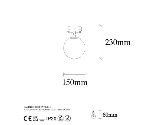 With its compact size of 15 x 15 cm and a total height of 23 cm, this chandelier is perfect for both small and large spaces. The cap's diameter of 15 cm and the base plate diameter of 12 cm make it an ideal choice for rooms of any size.