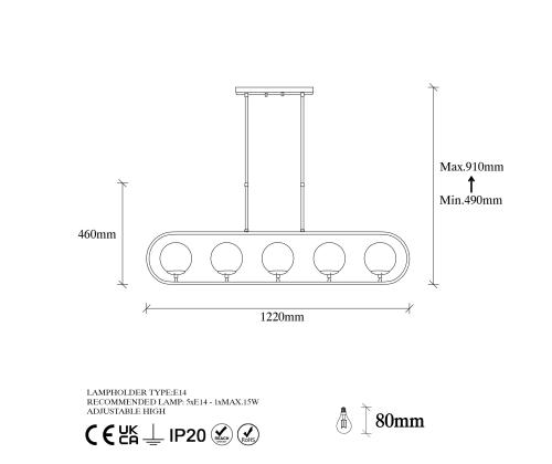 Illuminate your room with a warm and inviting glow, thanks to the five E14 sockets that can accommodate up to 15W bulbs. The adjustable height allows you to customize the lighting to suit your needs and create the perfect ambiance for any occasion.