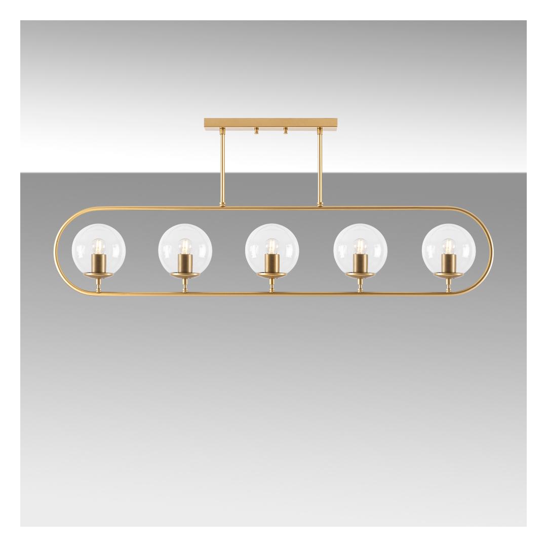 Transform your living space into a luxurious oasis with our stunning Gold Chandelier. This exquisite piece features a sleek metal body with a glass cap, exuding elegance and sophistication. The modern design adds a touch of novelty to any room, making it the perfect statement piece for your home.