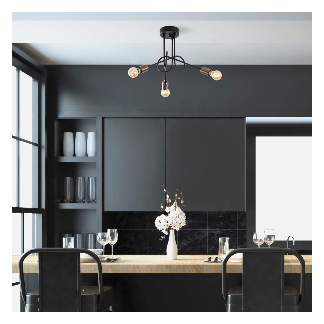 With its plain and industrial concept, this chandelier adds a touch of modernity to any room. Whether you're looking to enhance the charm of your dining area, living room, or bedroom, this chandelier will effortlessly transform your space into a cozy and inviting haven. The soft glow emitted by the three E27 sockets creates a warm and intimate atmosphere, perfect for relaxing or entertaining.