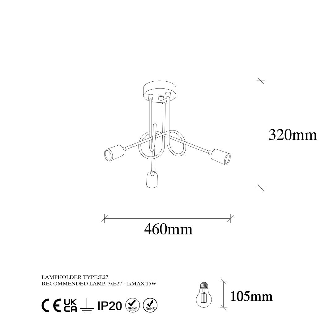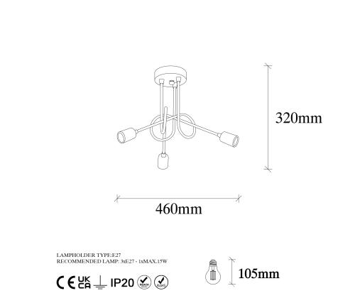 - Socket Type: 3 x E27 Max 15 W
