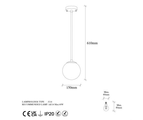 Not only does our chandelier enhance the visual appeal of your space, but it also provides ample illumination. The socket type E14 allows for a maximum of 40W, ensuring a bright and inviting atmosphere. Its IP20 rating guarantees safety and protection against dust.