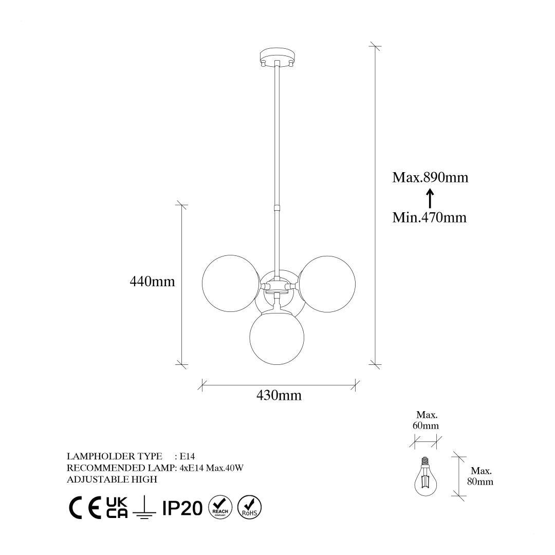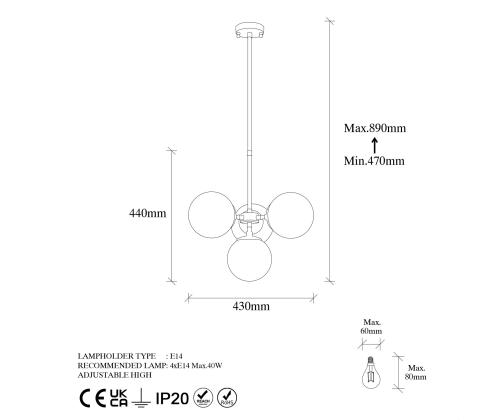 Socket Type: 4 x E 14 Max 40 W