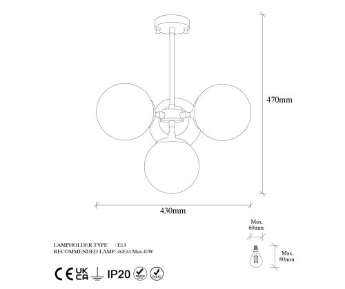 Socket Type: 4 x E 14 Max 40 W