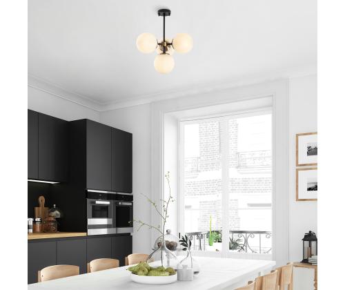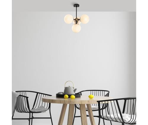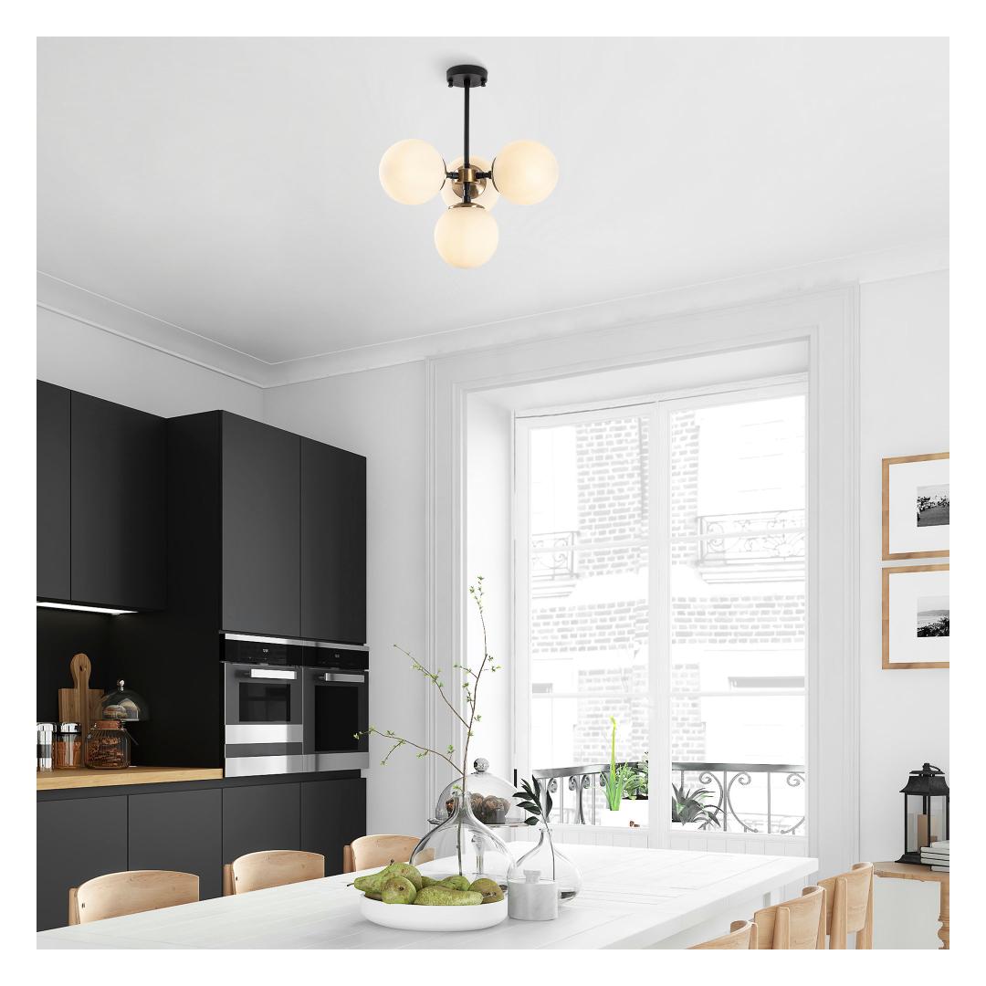 The chandelier is available in a combination of black, antique, and cream colors, allowing you to choose the perfect option to complement your decor. Its 15 cm diameter glass caps add a touch of elegance and create a mesmerizing glow when the lights are turned on.