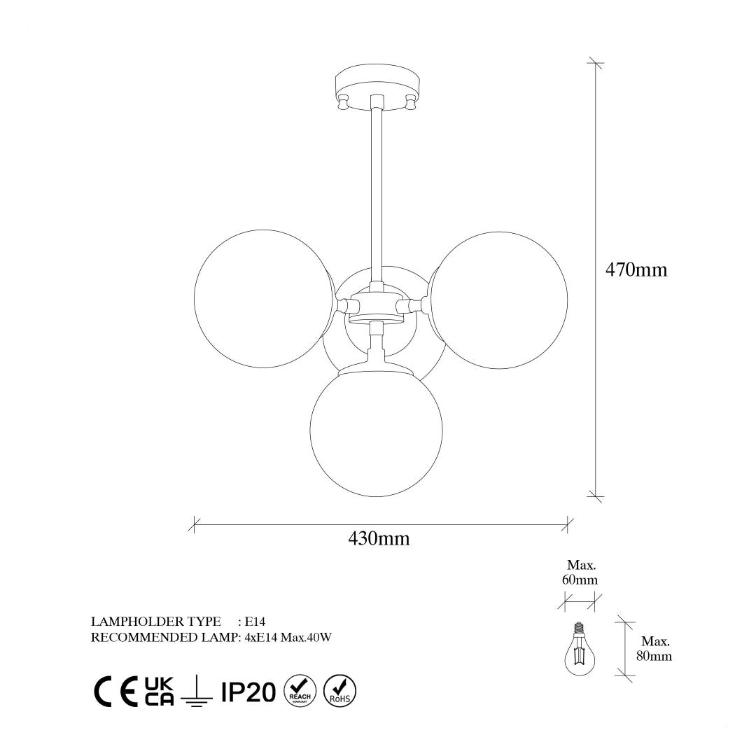 Socket Type: 4 x E 14 Max 40 W