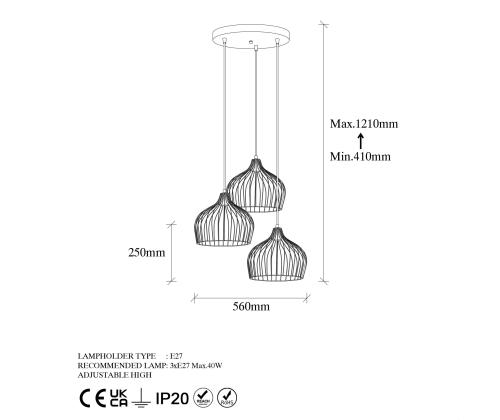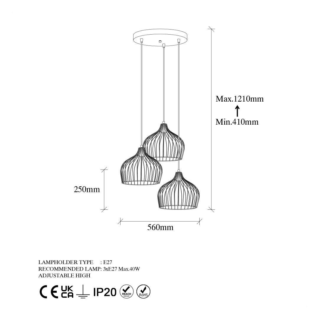 - Socket type: 3 x E27 Max 40 W