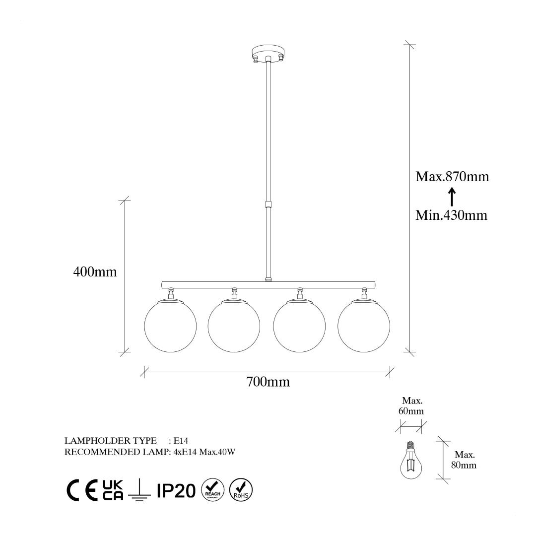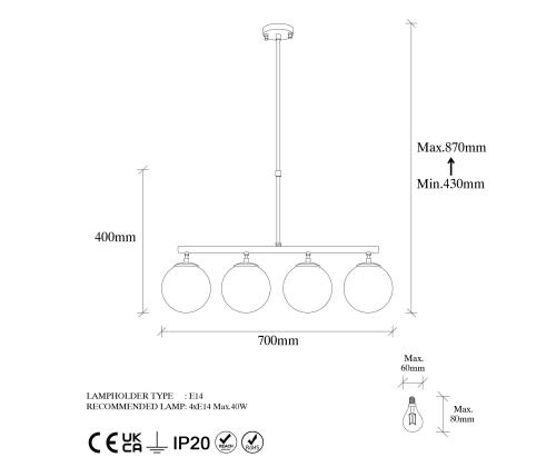 Socket Type: 4 x E 14 Max 40 W
