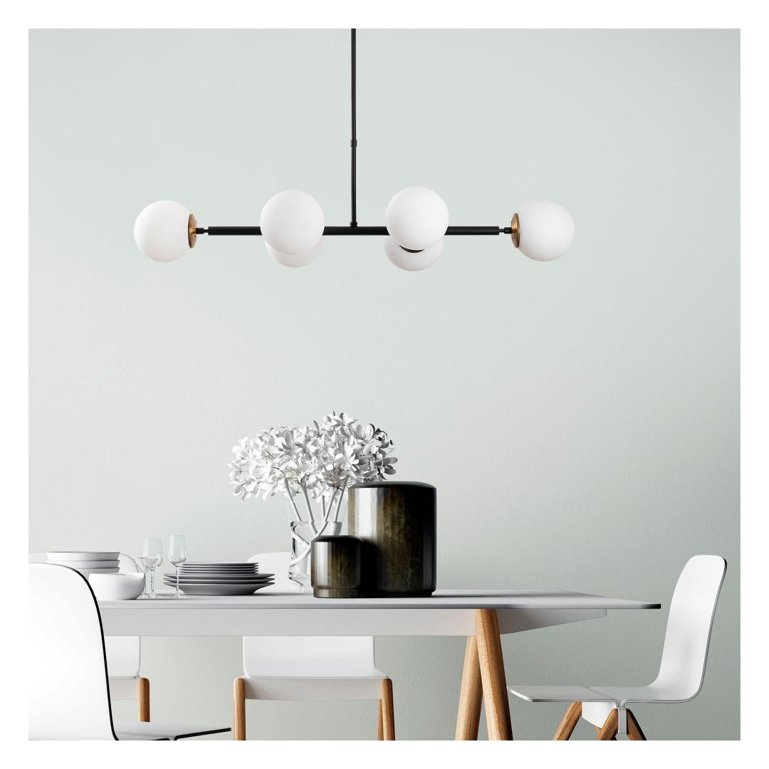 Crafted with a sturdy metal body, this chandelier exudes a sense of timeless elegance. The glass cap adds a touch of sophistication, while the metal base plate ensures stability and durability. Each cap has a diameter of 15 cm, creating a mesmerizing display of light and shadows.