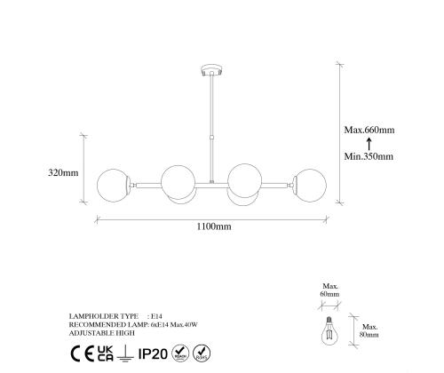 Socket Type: 6 x E 14 Max 40 W