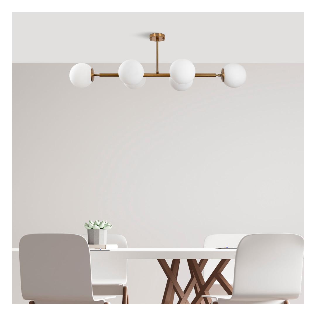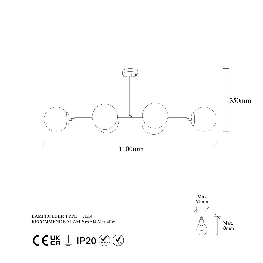 Featuring six E14 sockets, our chandelier provides ample lighting to brighten up your room. Each socket can accommodate a maximum of 40W, ensuring a luminous and inviting atmosphere. The chandelier's size of 110 x 40 x 35 cm makes it an ideal choice for larger spaces, adding a touch of grandeur to your home.