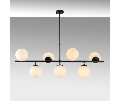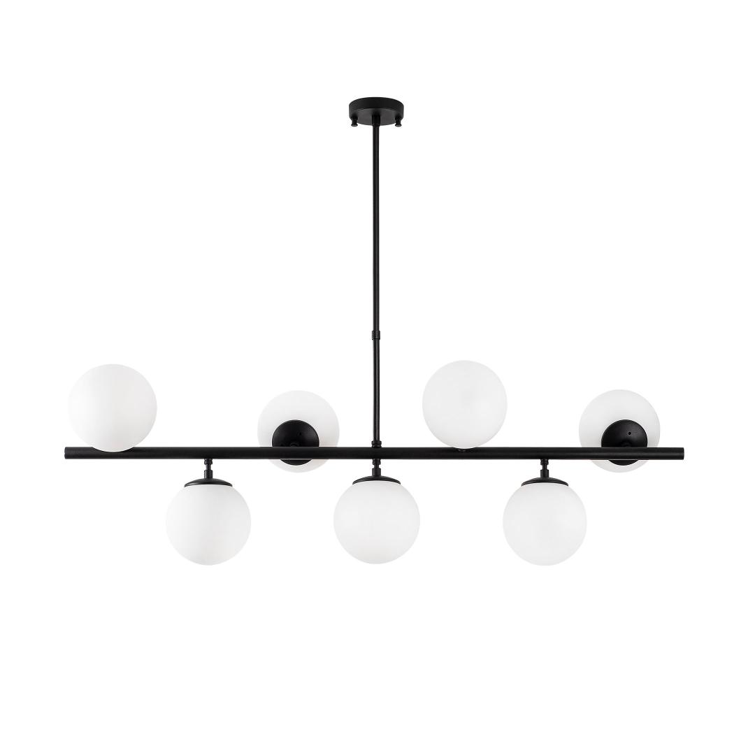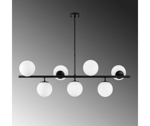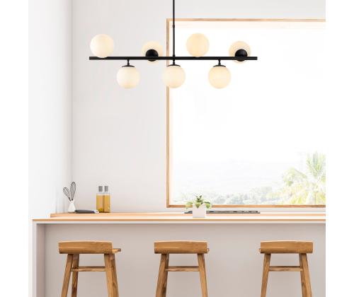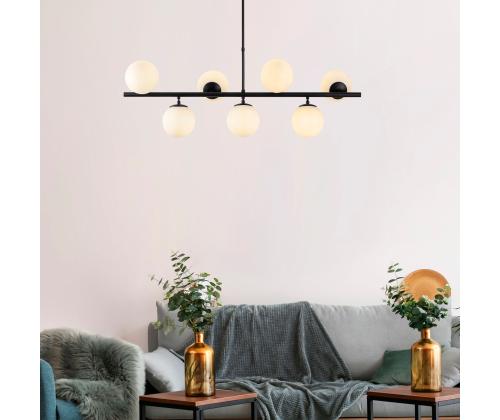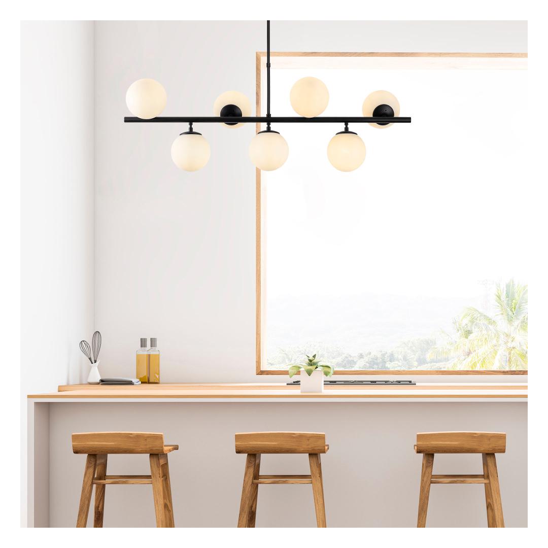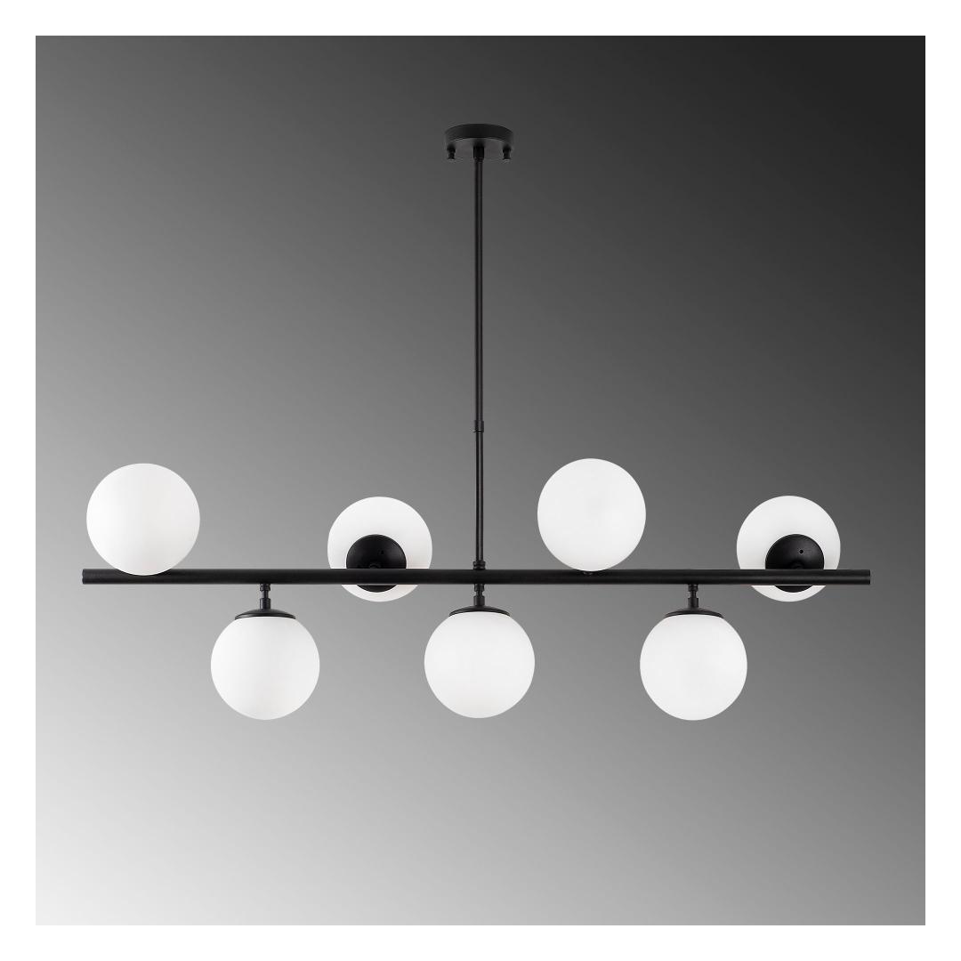 The chandelier features a sleek metal body with a glass cap, creating a modern and stylish look that will enhance any room in your home. The black and white color combination adds a contemporary flair to the design, making it a versatile piece that will complement any decor style.