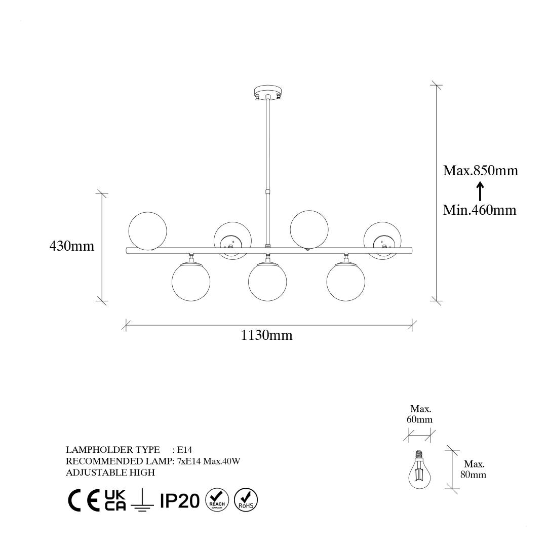 - Socket Type: 7 x E 14 Max 40 W