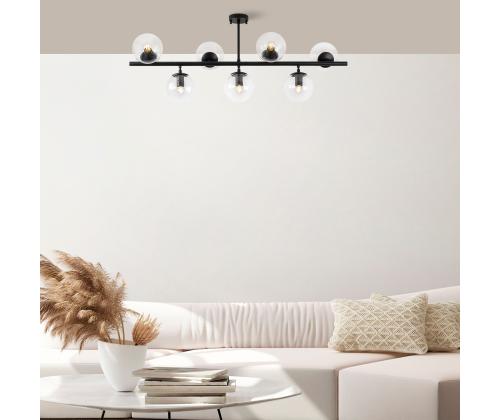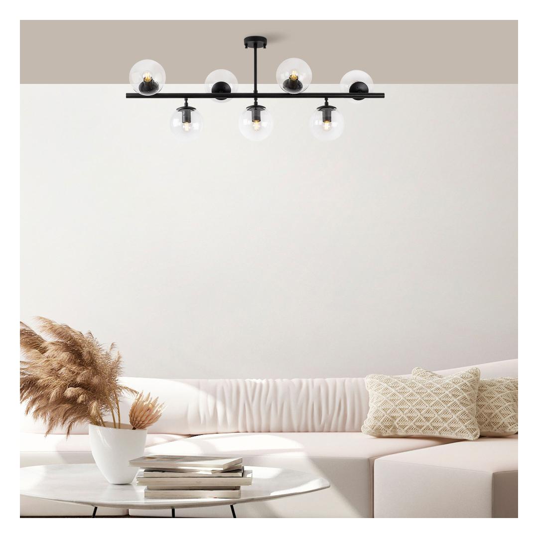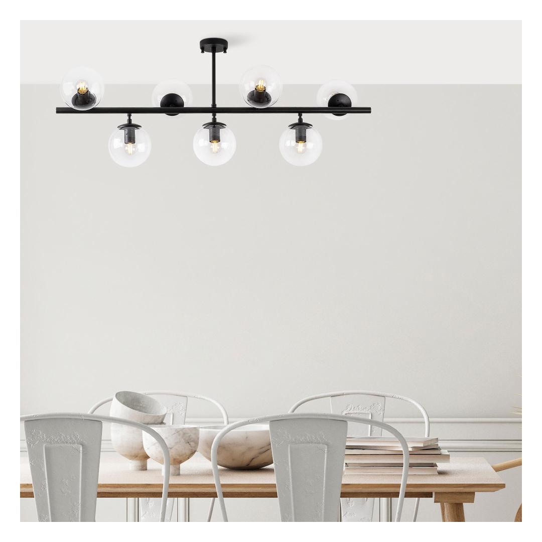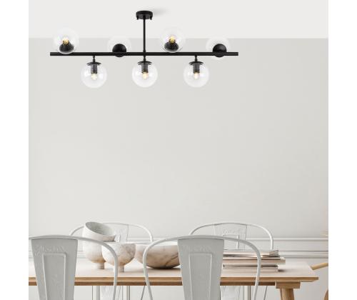 Elevate the ambiance of your living space with our exquisite black chandelier. This captivating piece is designed to add a touch of elegance and sophistication to any room. With its sleek metal body and glass cap, it exudes a sense of modernity and novelty that is sure to impress your guests.