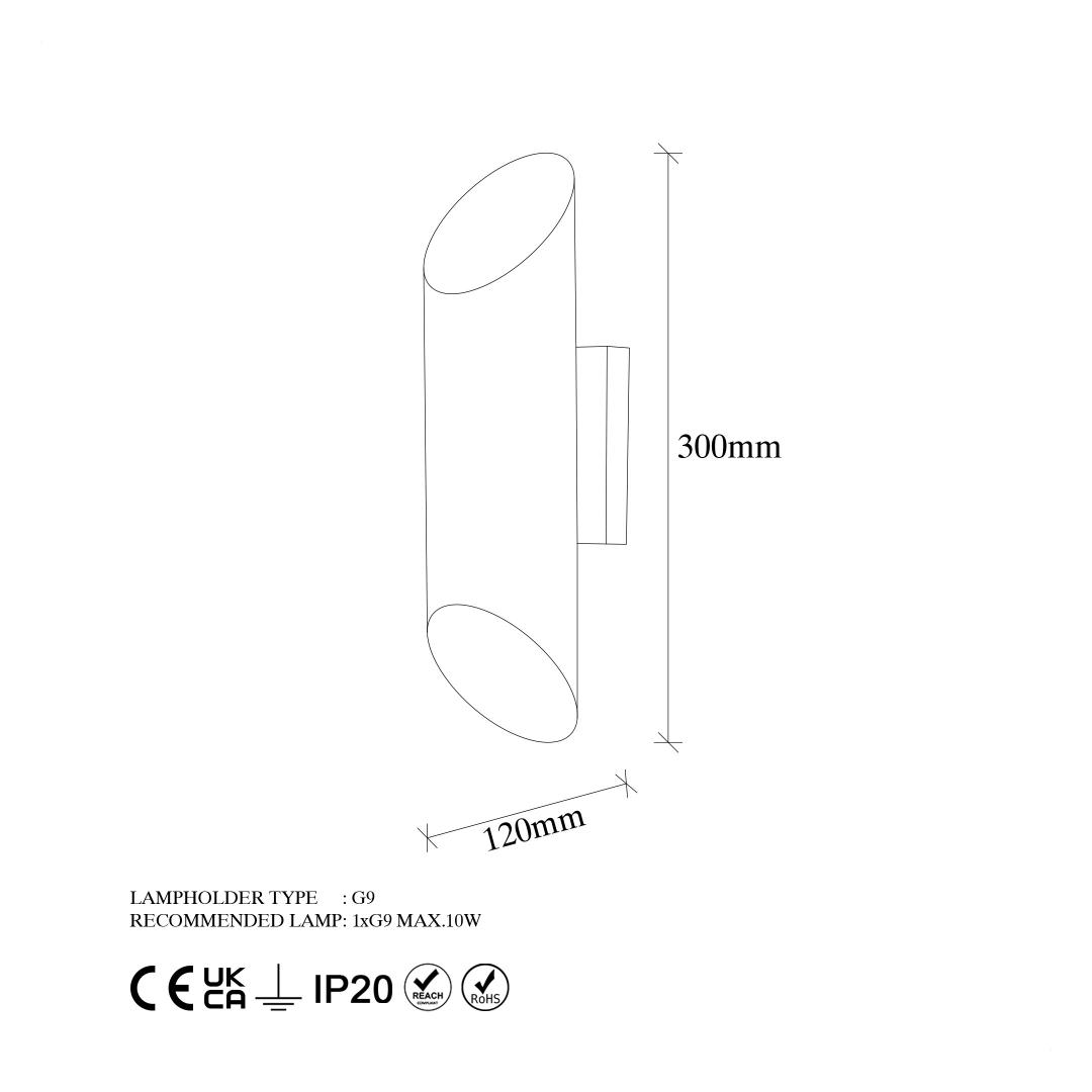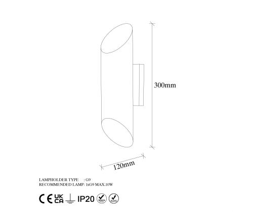 The Metal Wall Lamp features a metal body and cap, giving it a sleek and sophisticated appearance. The white color adds a touch of modernity to the design, making it the perfect addition to any contemporary space. The size of 8 x 12 x 30 cm makes it ideal for any room in your home, from the living room to the bedroom.