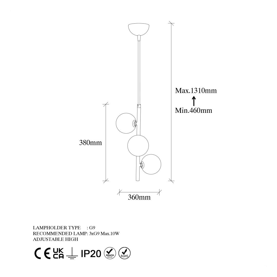 With a maximum height of 131 cm and an adjustable cable length of 90 cm, you can customize the height of the chandelier to suit your space perfectly. Whether you have high ceilings or a cozy nook, this chandelier will fit seamlessly into your home.