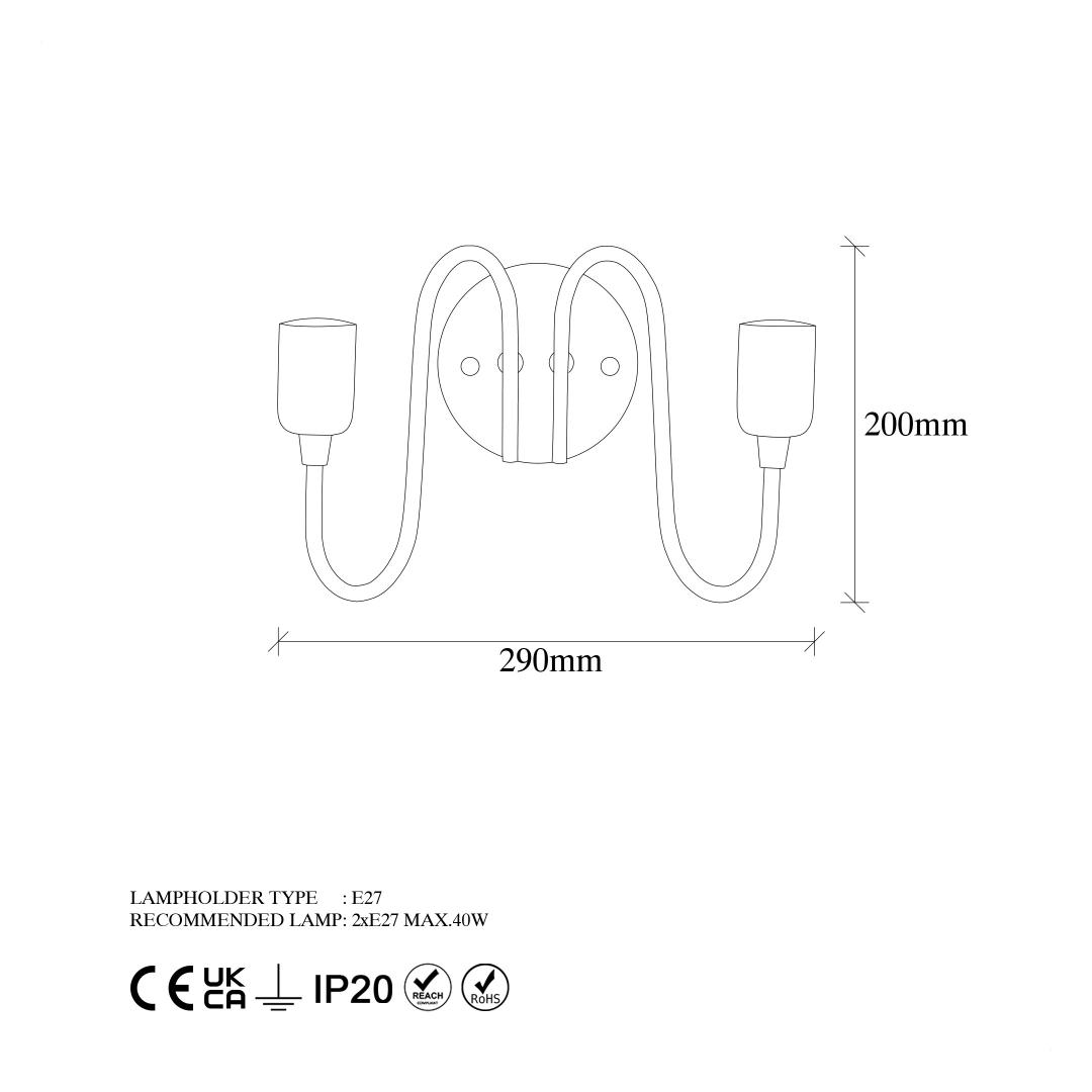 - Socket Type: 2 x E27 Max 40 W